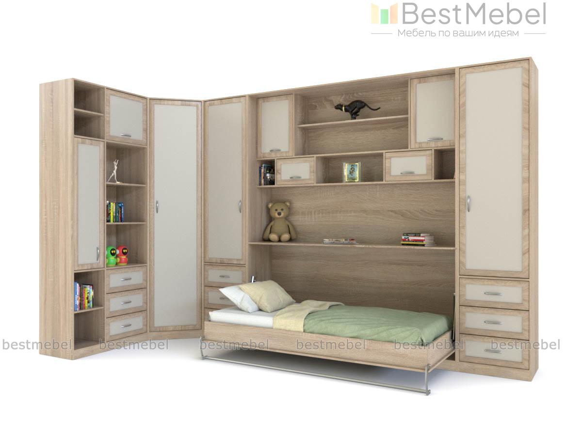 Шкаф-кровать трансформер Дуга BMS отличается современным дизайном, высокой функциональностью и дает возможность сэкономить жилую площадь комнаты. Угловая композиция с рамочными фасадами под массив дуба включает в себя платяные и бельевые отделения, выдвижные ящики для мелочей и вместительные открытые полки для книг и учебных материалов, а горизонтальная откидная секция с кроватью позволит легко получить комфортное спальное место. Купить шкаф-кровать трансформер Дуга BMS по выгодной цене приглашаем в наш интернет-магазин.