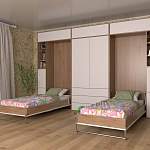 Шкаф-кровать трансформер Дуо 1 BMS поможет рационально организовать пространство и освободить центральную часть комнаты для активных игр. Внешне модель представляет собой лаконичный высокий шкаф с антресолями, открытыми книжными полками, распашными отделениями для белья и одежды и выдвижными ящиками, а в нишах за декоративными дверцами скрыты раскладные кровати. Сочетание теплых древесных тонов и белого гармонично дополнит интерьеры в скандинавском стиле. Купить шкаф-кровать трансформер Дуо 1 BMS приглашаем в наш интернет-магазин.