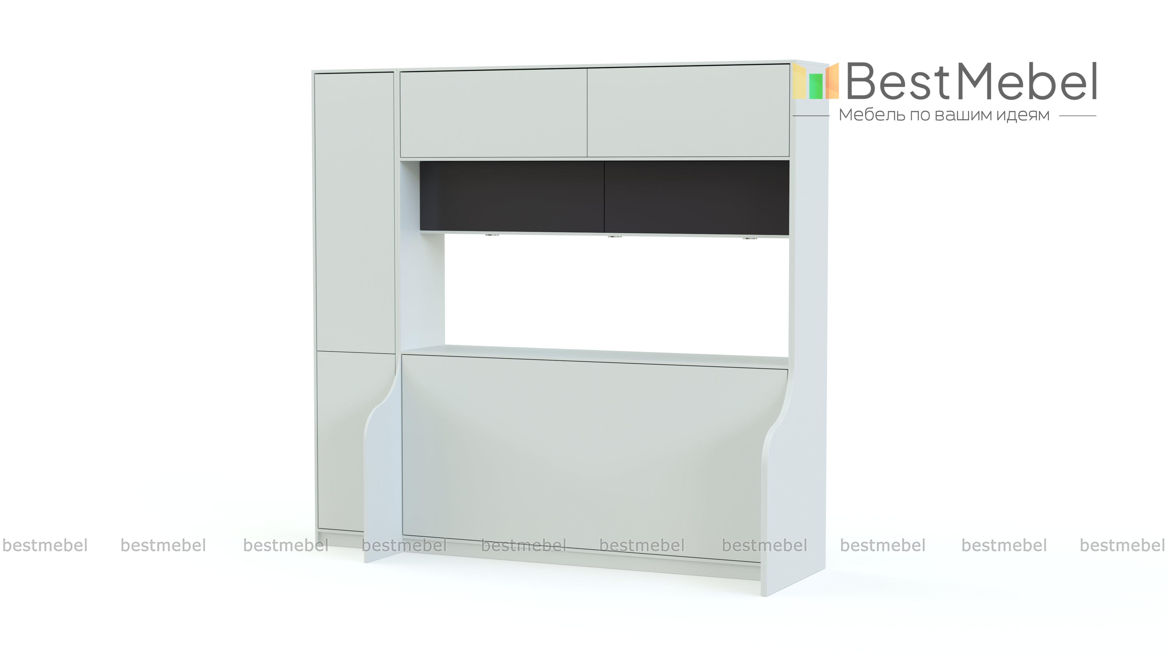Шкаф-кровать трансформер Форма 2 BMS просто и эффективно решит проблему нехватки полезной площади. Композиция 3 в 1 объединяет удобную систему хранения, рабочую зону и спальное место, значительно экономя пространство. Компактная стенка с контрастными фасадами, оборудована пеналом, письменным столом и антресольными закрытыми полками со встроенной подсветкой. При необходимости нижняя часть легко трансформируется в полноценную кровать с помощью горизонтального механизма подъема. Купить шкаф-кровать трансформер Форма 2 BMS для современной молодежной комнаты приглашаем в наш интернет-магазин.