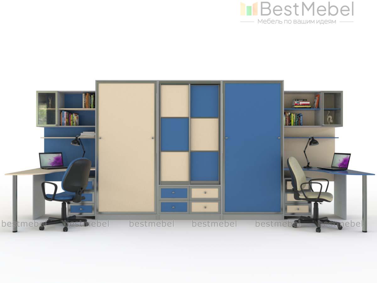 Шкаф-кровать трансформер Перу 24 BMS гармонично впишется в интерьер современной подростковой комнаты и поможет сэкономить полезную площадь для игр и занятий спортом. Стенка 2 в 1 оборудована шкафом с отделением-купе для одежды и выдвижными ящиками, по бокам от которого располагаются секции с дверцами-книжкой. Скрытые в нишах откидные кровати легко опускаются при помощи вертикального механизма и вы получаете два полноценных спальных места. Купить шкаф-кровать трансформер Перу 24 BMS, выполненную в сине-бежевой гамме с отделкой оттенка металлик, приглашаем в наш интернет-магазин.