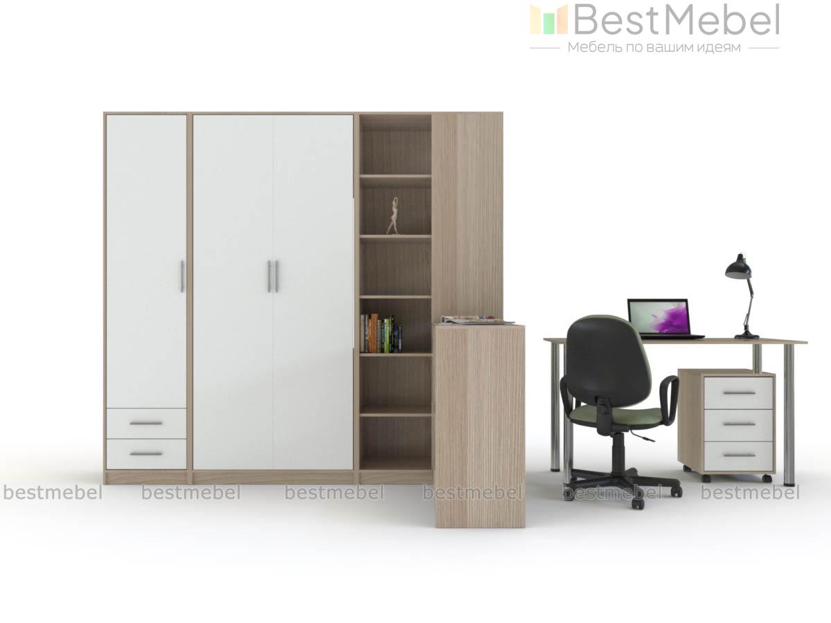 Шкаф-кровать трансформер Сена BMS поможет значительно сэкономить пространство и разделить помещение на функциональные зоны. Современная композиция 3 в 1 объединила продуманную до мелочей систему хранения, зону отдыха и рабочее место. Угловая модель из платяного шкафа и книжных стеллажей дополнена секцией с откидной кроватью и письменным столом. Выполненный в спокойных древесных тонах, комплект гармонично впишется в современные интерьеры и создаст комфортную обстановку для отдыха, работы или учебы. Купить шкаф-кровать трансформер Сена BMS выгодно приглашаем в наш интернет-магазин.