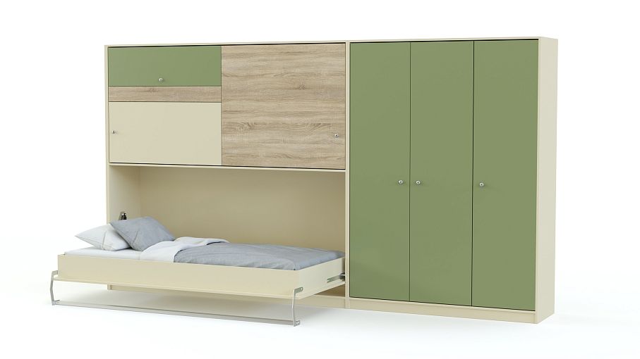 Шкаф-кровать трансформер Шелли 24 BMS позволит вписать все необходимое современной молодежной комнате в интерьер узкой или малогабаритной комнаты. Яркая линейная композиция 3 в 1 компактно объединила практичную систему хранения, зону отдыха и рабочее место. В комплекте распашные отделения для белья и одежды, глухие секции с полками и горизонтальный модуль с откидной кроватью и широкой столешницей, удобной для письма, творческих занятий и работы за ноутбуком. Купить шкаф-кровать трансформер Шелли 24 BMS по лучшей цене приглашаем к нам в интернет-магазин.