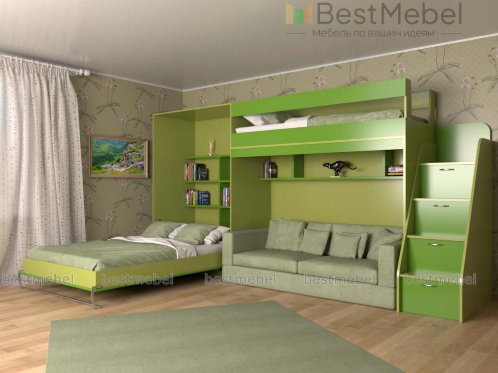 Шкаф-кровать трансформер Жасмин 66 BMS – оригинальная идея для обустройства современной детской. Яркая и функциональная композиция поможет просто и эффективно решить проблему нехватки полезной площади и непременно понравится детям. Модель 3 в 1 объединила удобную систему хранения, представленную открытыми полками и лестницей-стеллажом, двухместный диванчик и два спальных места – откидное и расположенное на втором ярусе за защитным бортиком. Купить шкаф-кровать трансформер Жасмин 66 BMS приглашаем в наш интернет-магазин по отличной цене.