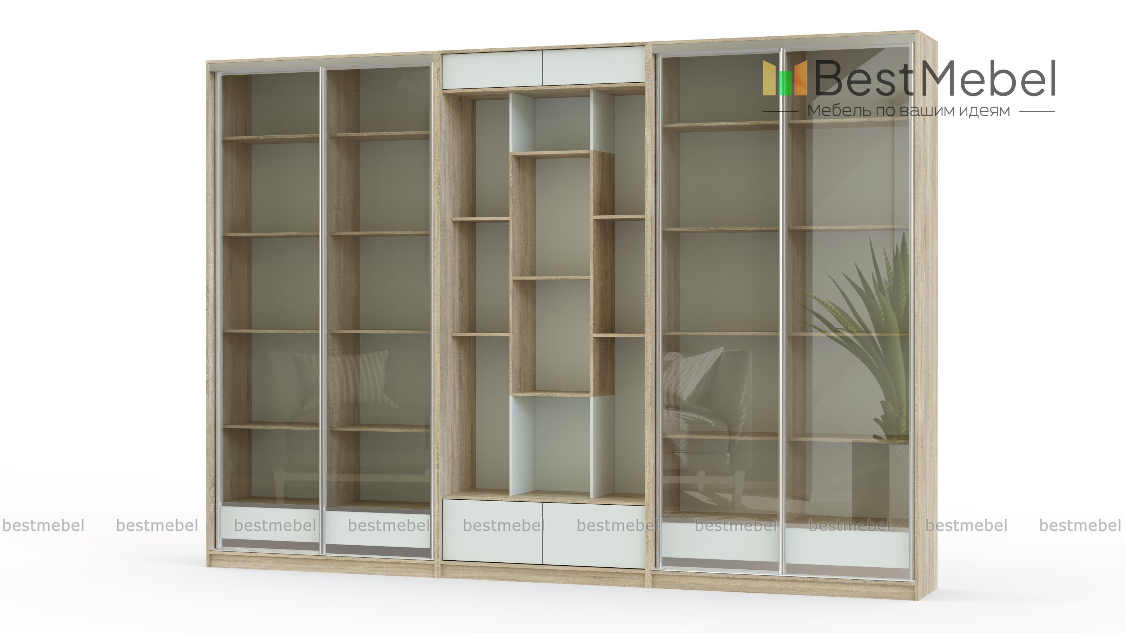 Двойной шкаф-купе Женева 26 BMS – удобная система хранения для современной гостиной и элемент дизайна. Полностью закрывающая одну из стен, конструкция поможет скрыть недостатки планировки и эффективно использовать доступное пространство. Шкаф оборудован двумя отделениями с раздвижными дверцами и открытой секцией с ящиками и полками для книг и предметов декора. Визуальную легкость модели придают стеклянные фасады с профилем оттенка серебро. Купить двойной шкаф-купе Женева 26 BMS и решить проблему хранения вам поможет наш интернет-магазин.