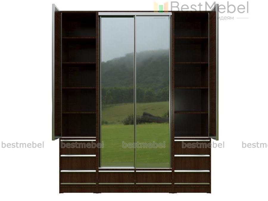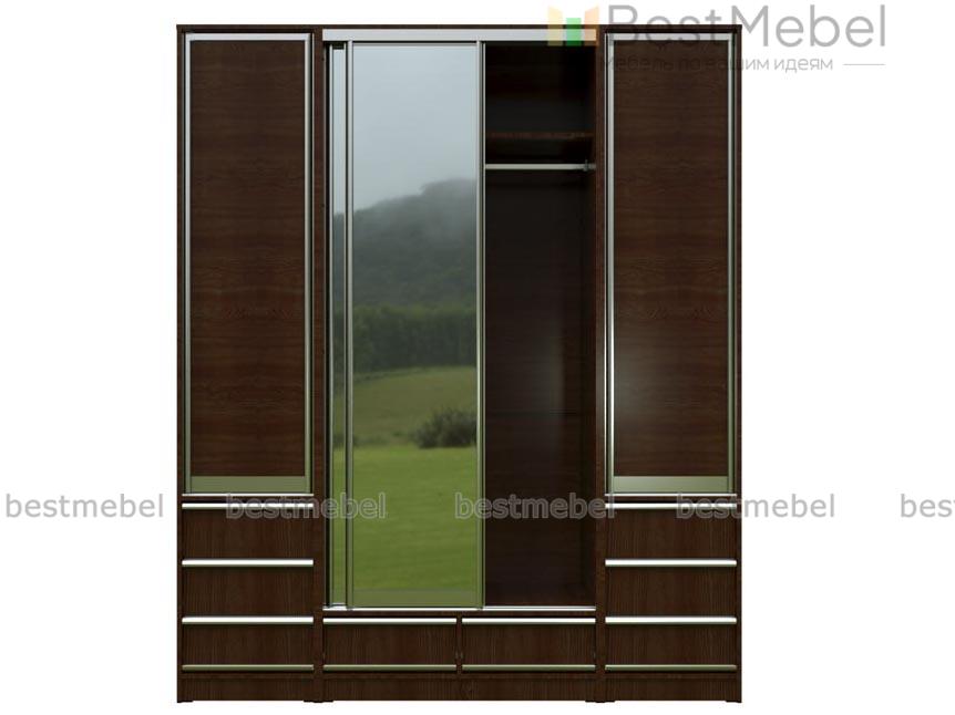 Шкаф-купе Аризон BMS удобен тем, что позволяет разместить в одном месте одежду на вешалках и мелкий трикотаж, постельное белье и прочий домашний текстиль. В центре многофункционального шкафа располагается двухдверное отделение-купе, а по бокам и в основании - распашные секции и выдвижные ящики. Зеркала украшает пескоструйный узор, а для отделки фасадов с древесным рисунком использован серебристый профиль. Купить шкаф-купе Аризон BMS вы сможете в нашем интернет-магазине, подобрав цветовое решение по своему вкусу.