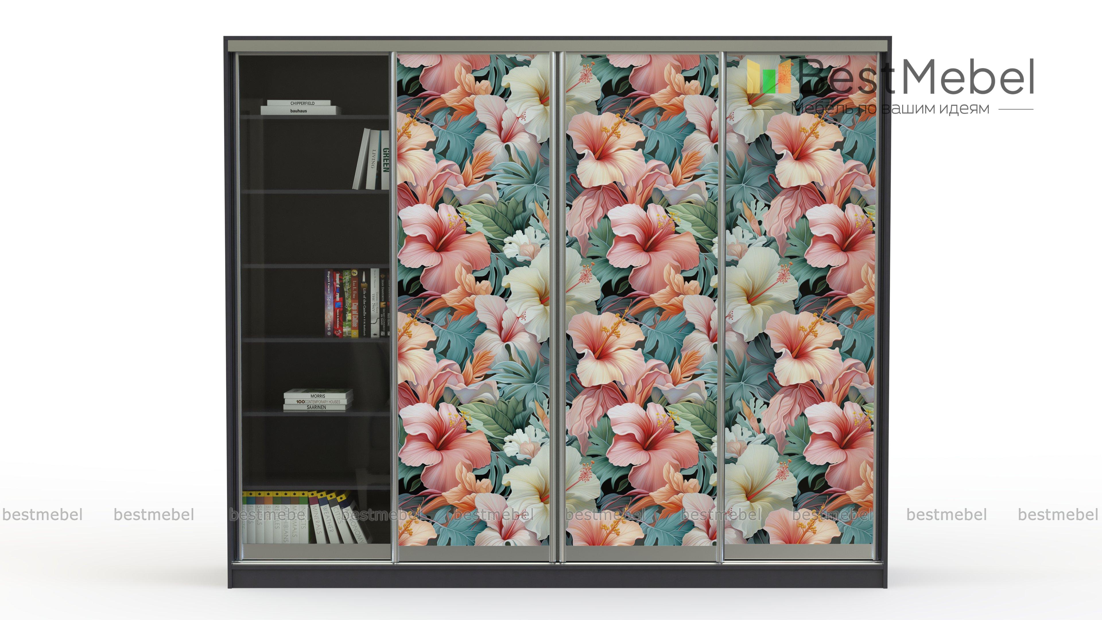 Шкаф-купе Арт 15 BMS с реалистичной цветочной фотопечатью сочетает эстетику исполнения с удобным функционалом. Объединившая платяной и книжный шкафы четырехдверная модель разместит как одежду, так и любимые издания и рабочие материалы. Износостойкая ламинированная плита и стекло создают прочную и визуально легкую конструкцию. Купить шкаф-купе Арт 15 BMS для меблировки гостиной или комнаты подростка можно недорого на сайте нашего интернет-магазина.
