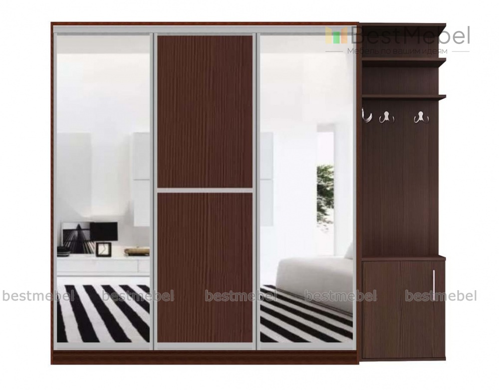 Шкаф-купе Айва 10 BMS станет отличным выбором для меблировки входной зоны, сочетая в себе современный дизайн и функциональность. Лаконичная трехдверная модель с платяным отделением и полками дополнена торцевой секцией с открытой вешалкой, распашной тумбой и отделениями под головные уборы. Зеркальные дверцы незаменимы для примерок и визуально расширяют границы прихожей. Купить Шкаф-купе Айва 10 BMS приглашаем в наш интернет-магазин по доступной цене.