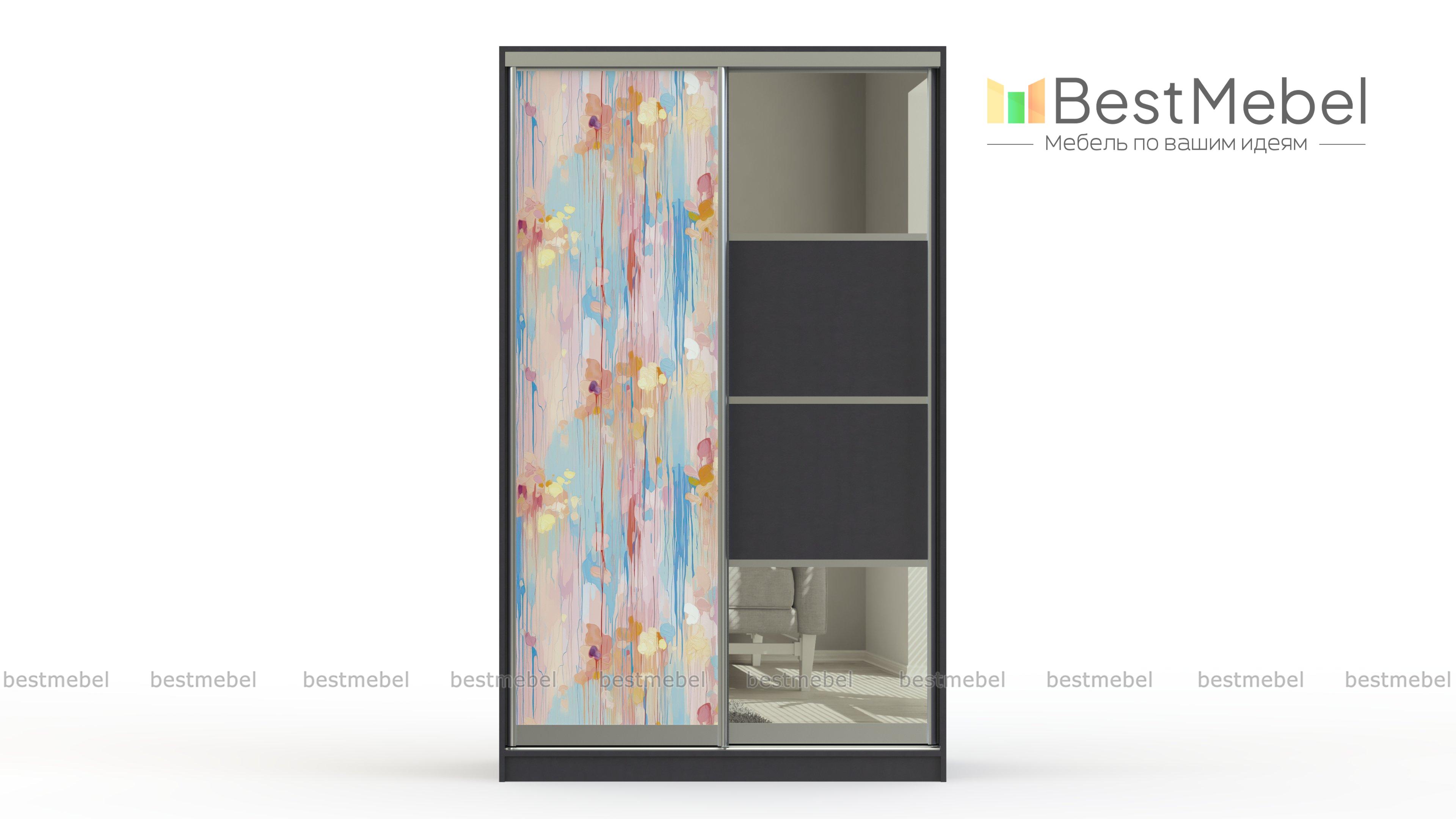 Шкаф-купе Диона 1 BMS выполнен в стиле минимализма с ярким штрихом в виде нежного размытого принта. Одна из раздвижных створок двухдверного шкафа украшена в технике фотопечати, а вторая дополнена зеркальными вставками, визуально облегчающими пространство. Компактный платяной шкаф оптимален для хранения базового гардероба в небольших современных квартирах. Купить шкаф-купе Диона 1 BMS вы сможете в нашем интернет-магазине, по желанию изменив цвет и размеры.