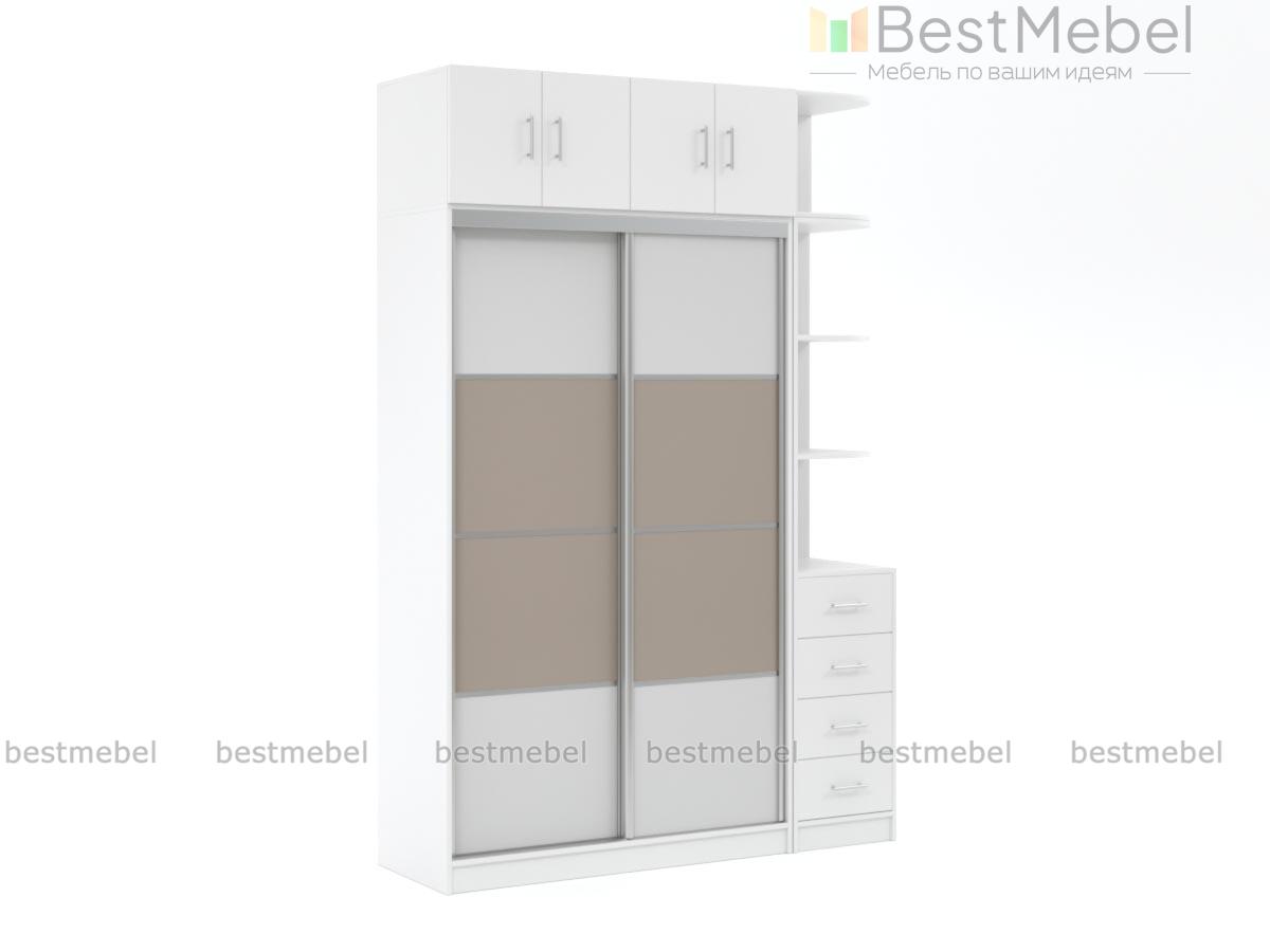 Шкаф-купе Дональд 2 BMS отличается особенной вместительностью благодаря комбинированной конструкции и актуальным дизайном. Модель объединила двухдверный шкаф-купе с платяным отделением, просторную распашную антресоль для сезонных вещей и секцию с тумбой и открытыми скругленными полками для бытовых мелочей и предметов декора. Визуально легкий в белом цвете, шкаф декорирован нейтрально-бежевыми вставками. Купить шкаф-купе Дональд 2 BMS вы всегда сможете по доступной цене в нашем интернет-магазине.
