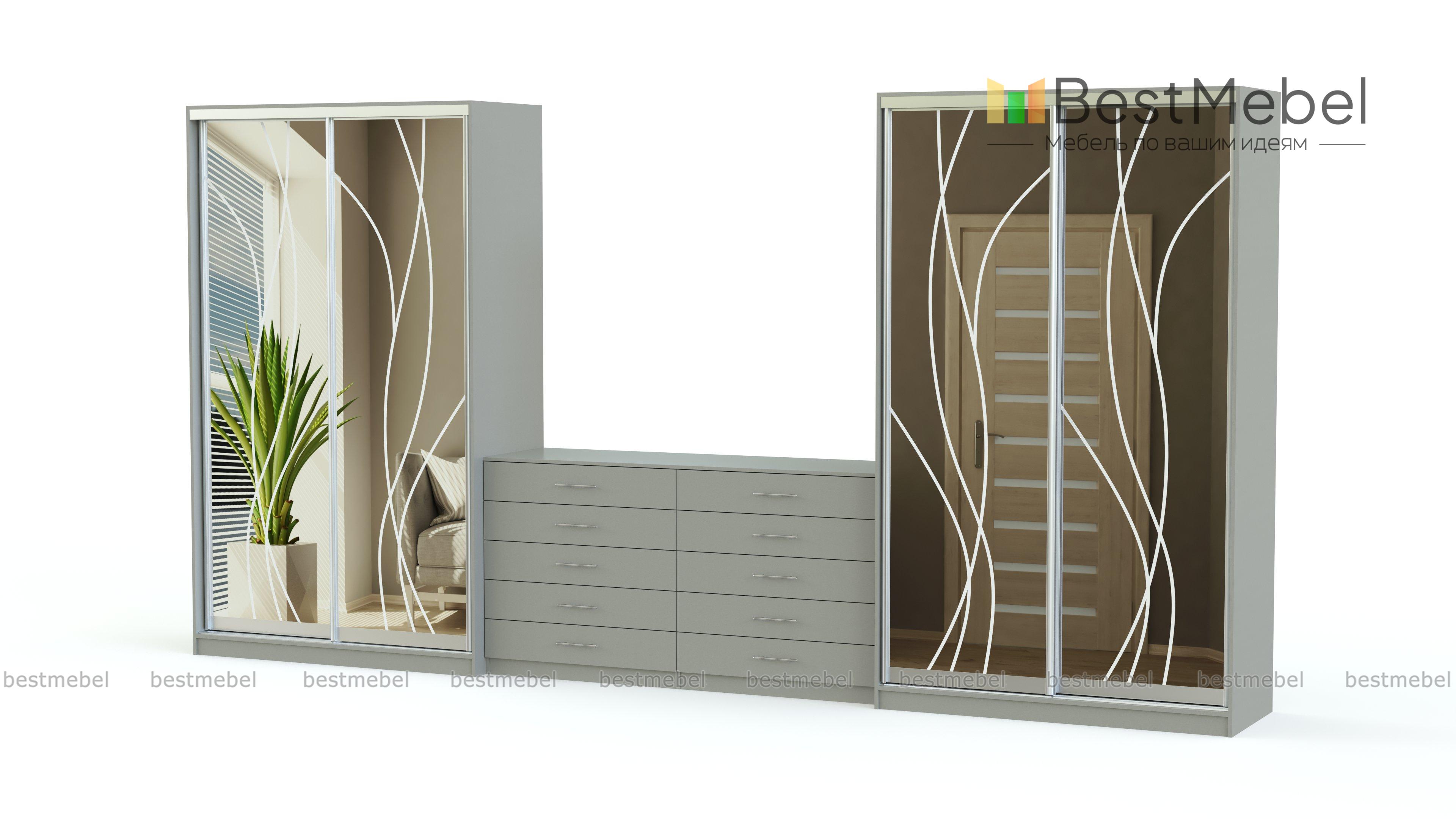 Шкаф-купе Интер S-182 BMS предназначен для меблировки современных спален и гостиных и характеризуется крупными габаритами, высокой функциональностью и элегантным дизайном. Модель в сочетании темных матовых оттенков и зеркальных фасадов с пескоструйным рисунком станет центральным предметом интерьера. Разместить гардероб помогут симметрично расположенные двухдверные шкафы-купе, а для ТВ и бытовых мелочей предусмотрена центральная секция с выдвижными ящиками. Купить шкаф-купе Интер S-182 BMS вы сможете в нашем интернет-магазине.