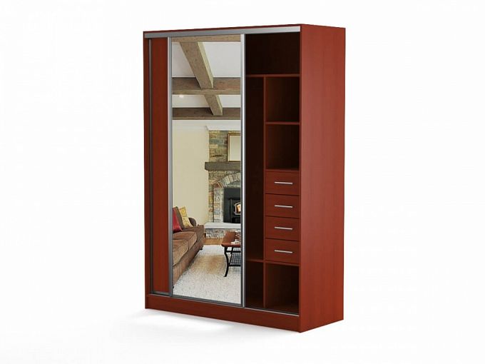 Шкаф-купе КАСКАД 4Я BMS отличается компактными размерами и редкой функциональностью. Двухдверная модель с комбинированными фасадами станет оптимальным выбором для небольшой спальни или прихожей. Шкаф выполнен в теплых древесных тонах, одна дверца – зеркальная, что позволит сэкономить на дополнительных предметах меблировки. Помимо стандартного отделения со штангой, антресольной и нижней полок, модель оборудована секцией с четырьмя выдвижными ящиками для мелких вещей. Купить шкаф-купе КАСКАД 4Я BMS по лучшей цене приглашаем в наш интернет-магазин.