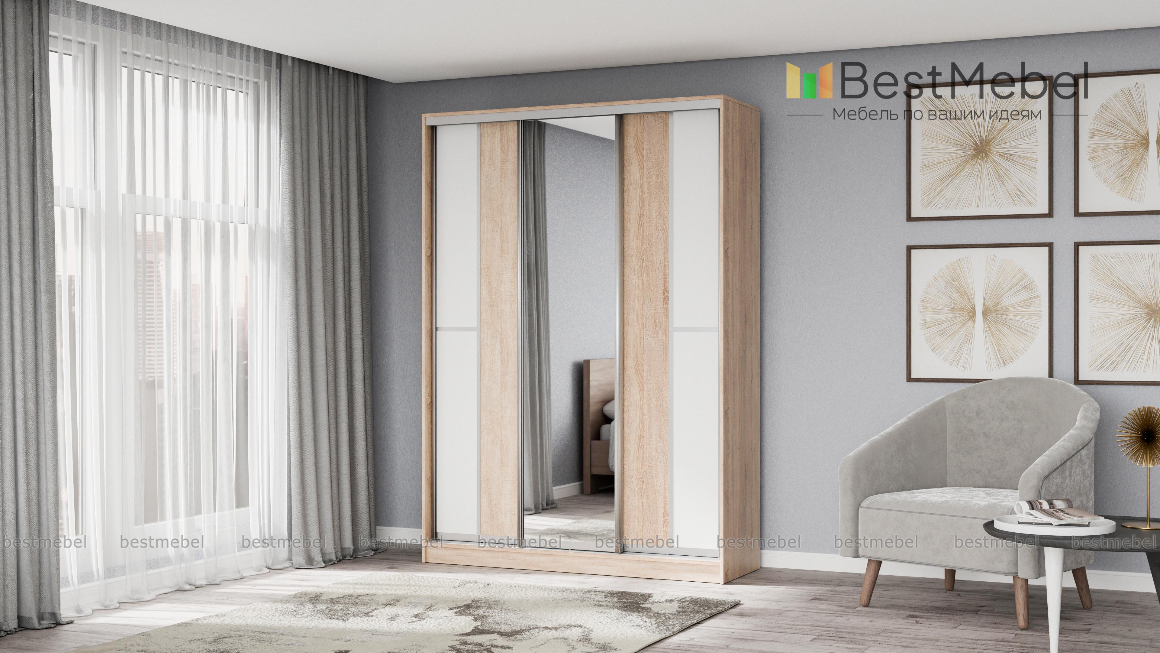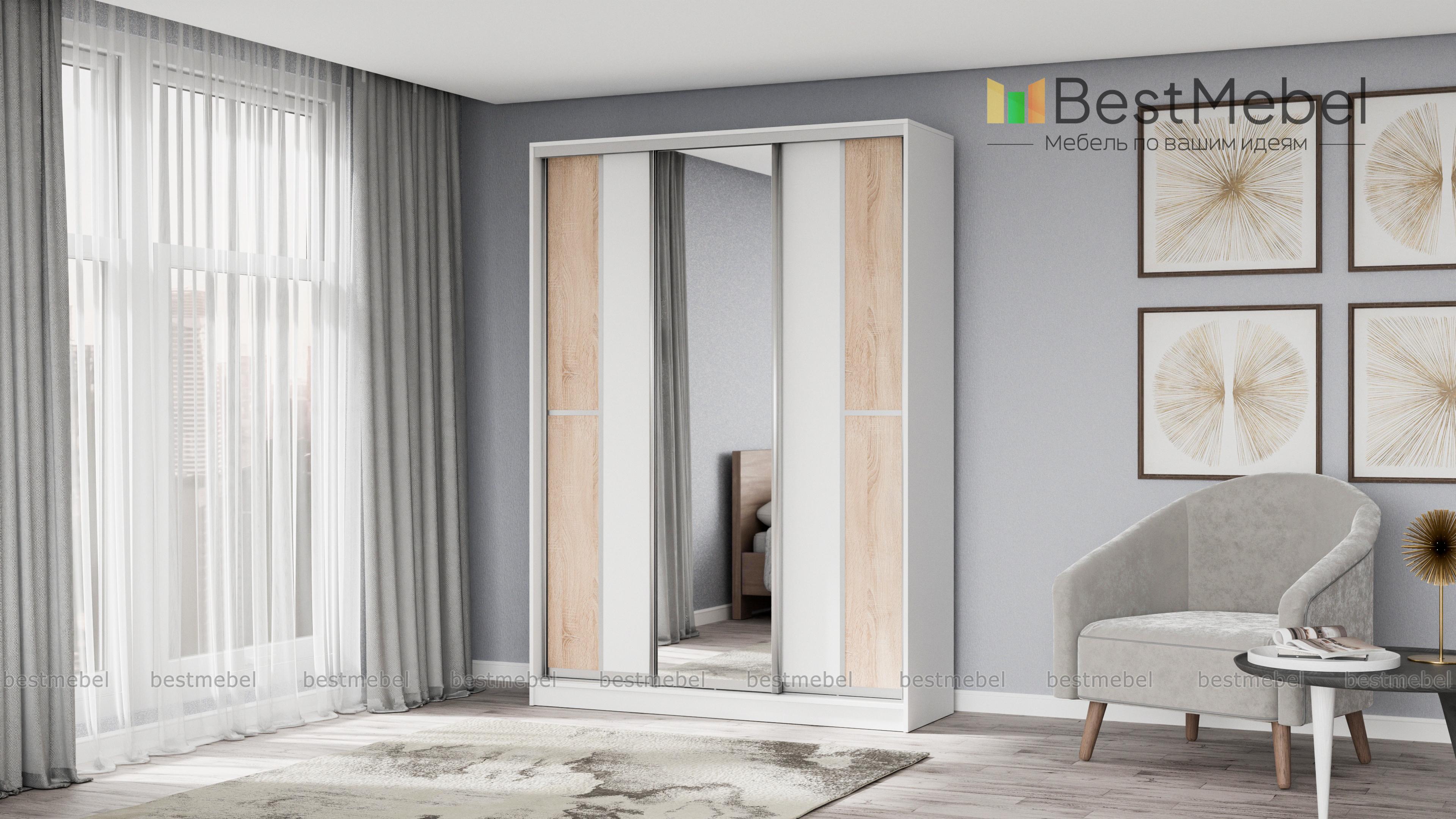 Шкаф-купе Концепт-21 BMS ‒ яркий пример запоминающейся мебели с шикарным дизайном, которая украсит собой любой интерьер. Все элементы смотрятся уместно и красиво. Особенно радует глаз зеркало, размещенное в центре конструкции. Изделие может похвастаться хорошей вместимостью. Боковые полочки можно занять обувью и другими мелкогабаритными вещами, верхняя полка прекрасно подойдет для головных уборов и аксессуаров, а крупный отсек для одежды позволит разместить обширный гардероб. Купить шкаф-купе Концепт-21 BMS недорого можно на нашем сайте.