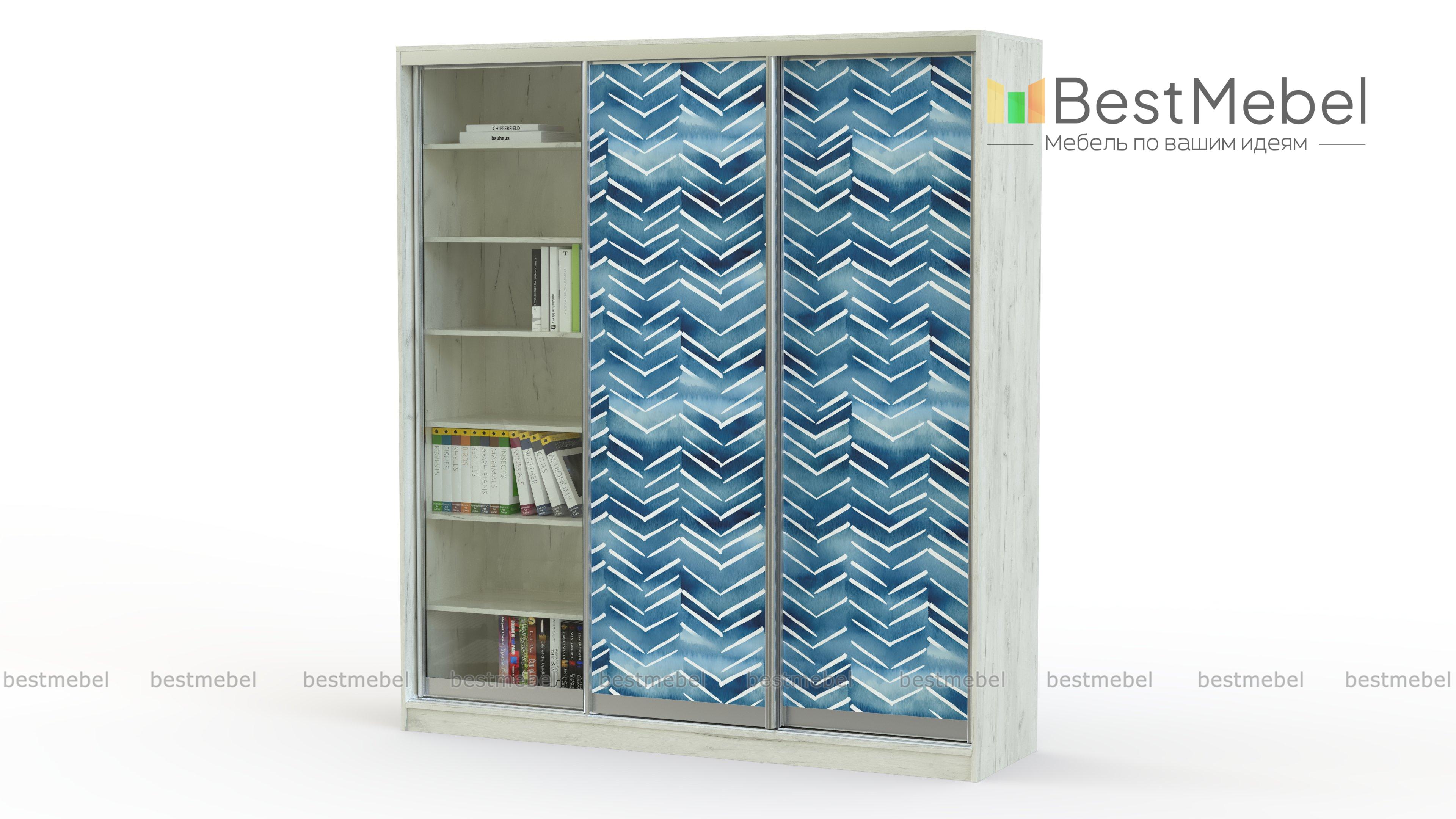 Шкаф-купе Кусто 3 BMS сочетает в себе функции платяного и книжного шкафа. Отделение для одежды закрыто глухими створками с популярным геометрическим принтом, а прозрачное стекло обеспечивает отличный обзор содержимому полок. Корпус из прочной ламинированной плиты и износостойкий фасад отличаются простотой ухода, и шкаф надолго сохранит эстетичный внешний вид. Купить шкаф-купе Кусто 3 BMS вы сможете в нашем интернет-магазине с выбором цвета и размеров.
