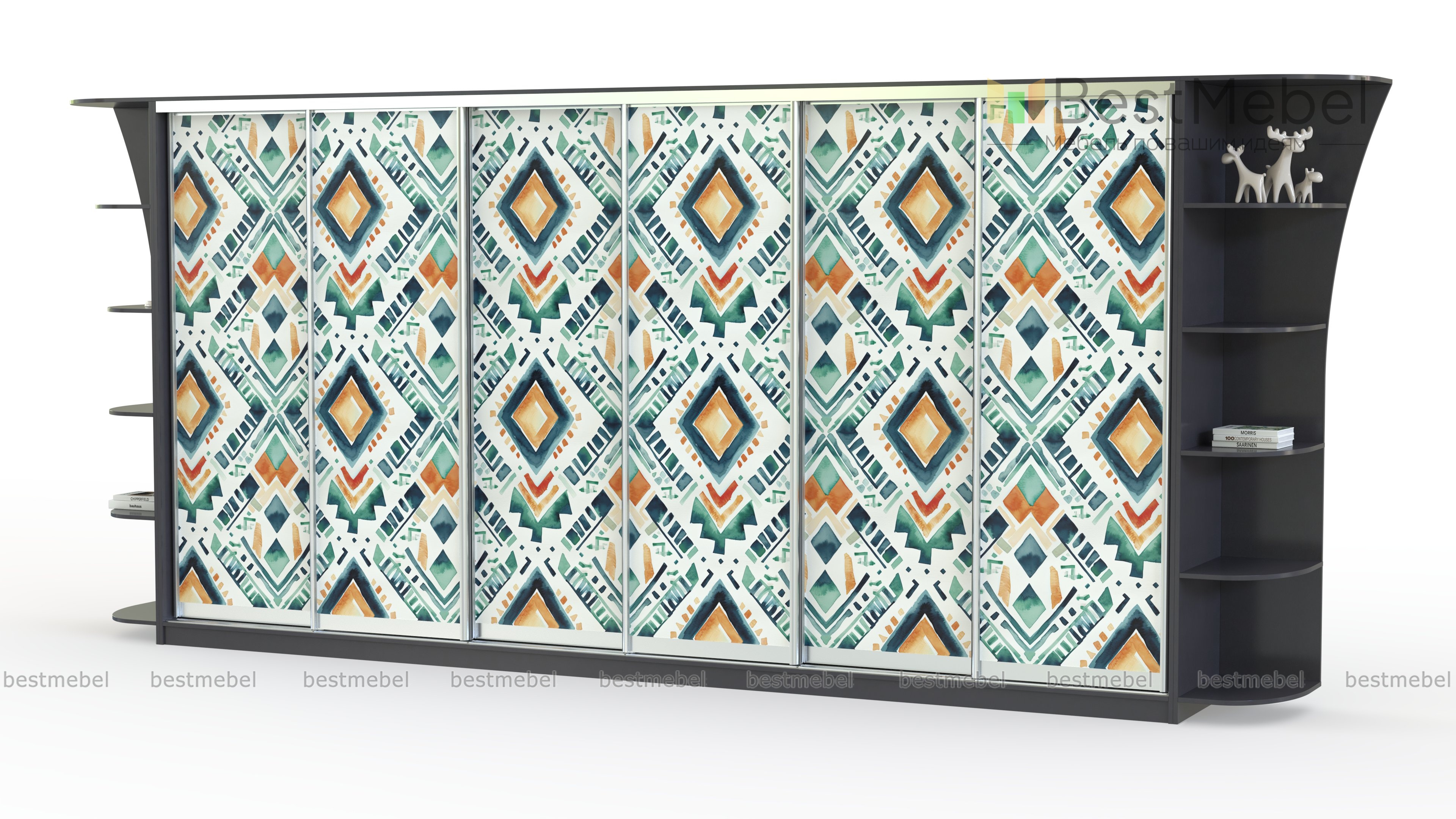 Шкаф-купе Лайм 8 BMS поможет организовать удобное хранение вещей и добавит строгому интерьеру цвета. Фотопечать в этностиле превращает шестидверную конструкцию с глухим фасадом в основной элемент дизайна современной квартиры. Дополняющие основное гардеробное отделение угловые стеллажи плавно сужаются книзу, создавая эффектный силуэт. Купить шкаф-купе Лайм 8 BMS приглашаем в наш интернет-магазин с выбором оптимальных размеров, цвета и наполнения.