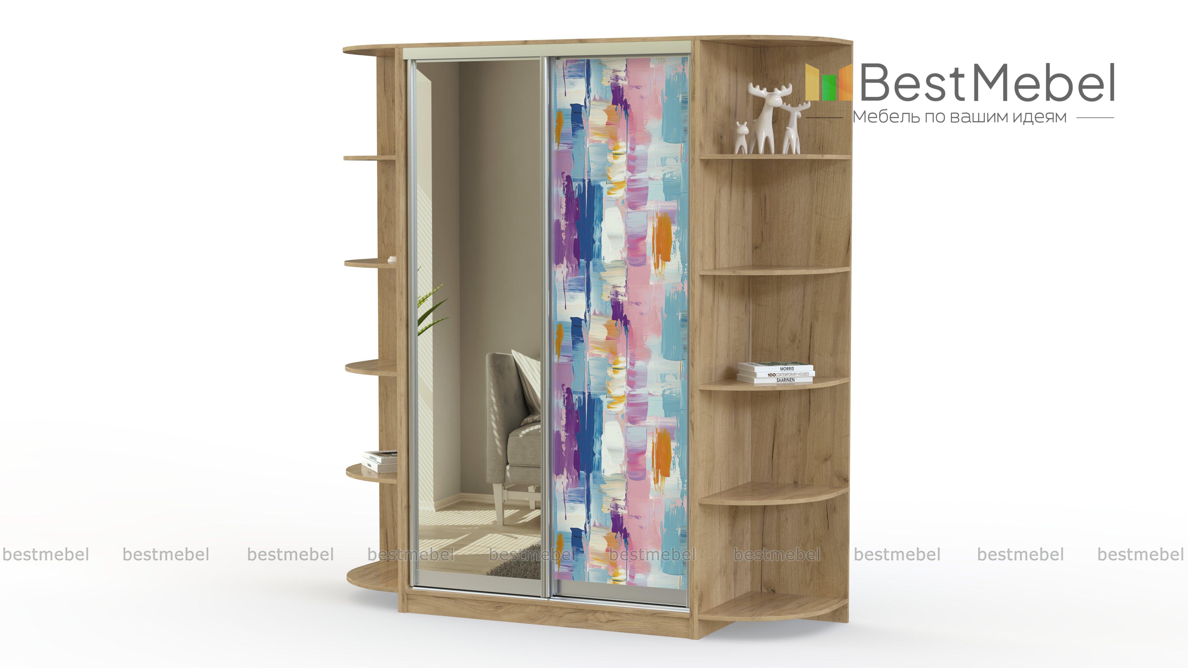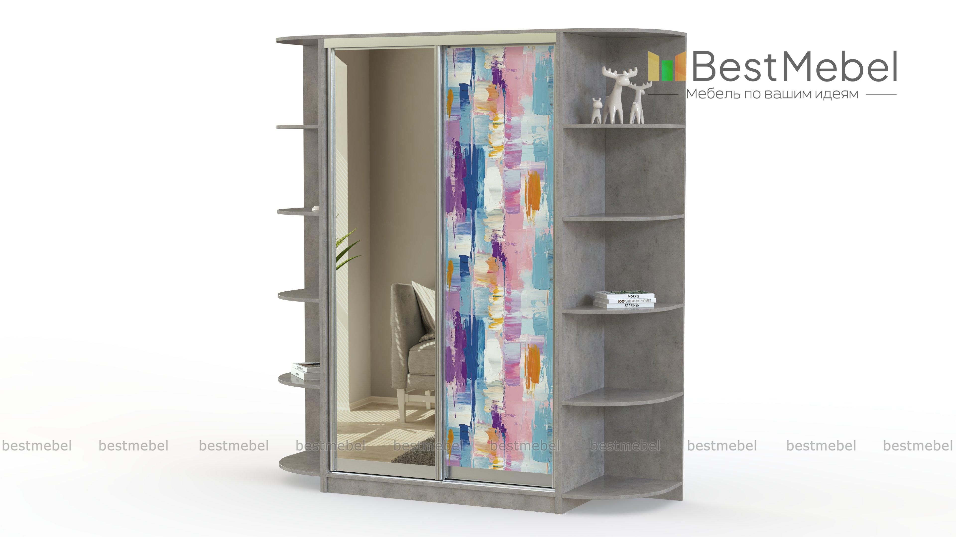 Шкаф-купе Марко 9 BMS – для тех, кто ценит в мебели минимализм и функциональность. Стильный и лаконичный, двухдверный шкаф имеет универсальную светлую базу и конструкцию с симметричными торцевыми стеллажами. Зеркальное полотно в оформлении фасада скомбинировано с яркой цветной абстракцией-фотопечатью. Купить шкаф-купе Марко 9 BMS для хранения одежды, обуви, уходовых средств, книг и приятных мелочей вы сможете недорого на сайте нашего интернет-магазина.