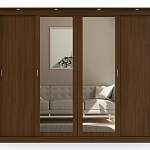 Шкаф-купе Миллениум-4 BMS – крупногабаритный и вместительный, предназначен для меблировки просторных помещений. Четырехдверная модель позволяет хранить в одном месте гардероб и домашний текстиль, сэкономив на лишней мебели. Выполненный из ламинированной плиты в древесных тонах, шкаф дополнен ростовыми зеркалами и встроенной в козырек подсветкой, которая не только выполняет практическую функцию, но и создает атмосферу уюта. Купить шкаф-купе Миллениум-4 BMS вы сможете в нашем интернет-магазине, по желанию изменив цвет и размеры.