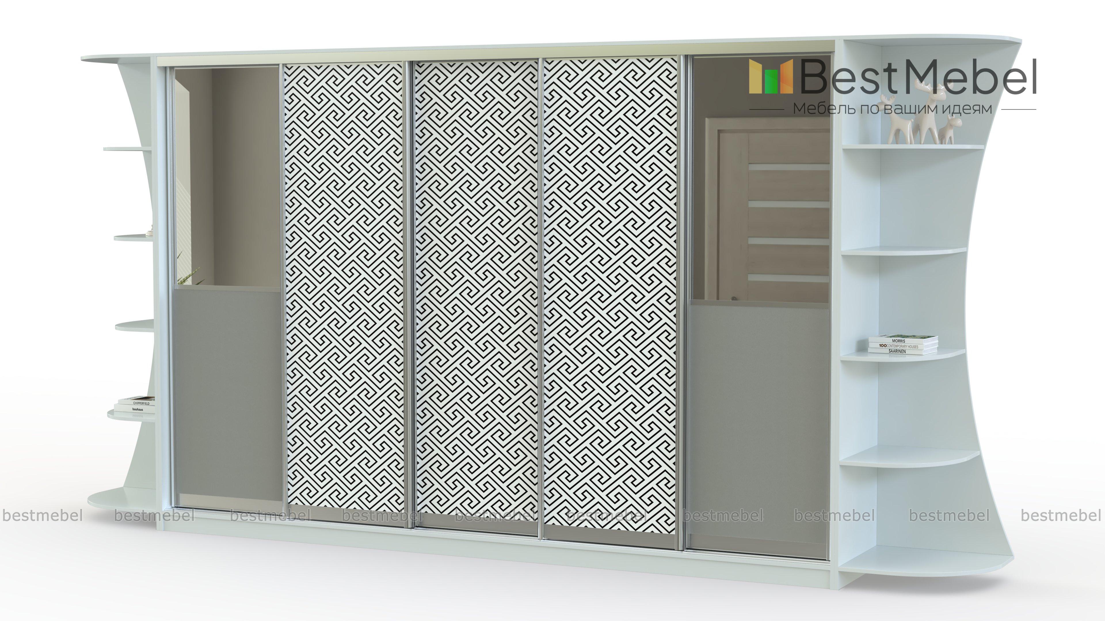 Шкаф-купе Мираж 11 BMS станет центральным предметом меблировки уютной современной гостиной. Пятидверная модель с торцевыми фигурными стеллажами оптимальна для просторных помещений и поможет разгрузить другие комнаты дома от лишней мебели, компактно разместив большое количество вещей. Фасад шкафа декорирован зеркальными вставками и оригинальной фотопечатью в нейтральных тонах. Купить шкаф-купе Мираж 11 BMS приглашаем в наш интернет-магазин по лучшей цене.