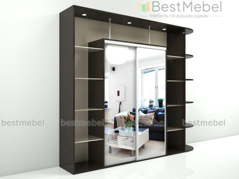 Шкаф-купе Млайн-18 BMS – оригинальная современная композиция, которая гармонично впишется в интерьер спальни или гостиной. Крупногабаритный шкаф отличается вместительностью и при этом визуальной легкостью за счет эффектного сочетания разных фактур. Центральная раздвижная секция с зеркальными дверцами дополнена хромированными стойками, стеклянными полочками и скругленным торцевым стеллажом. Купить шкаф-купе Млайн-18 BMS и дополнить меблировку многофункциональной и стильной вещью вам поможет наш интернет-магазин.