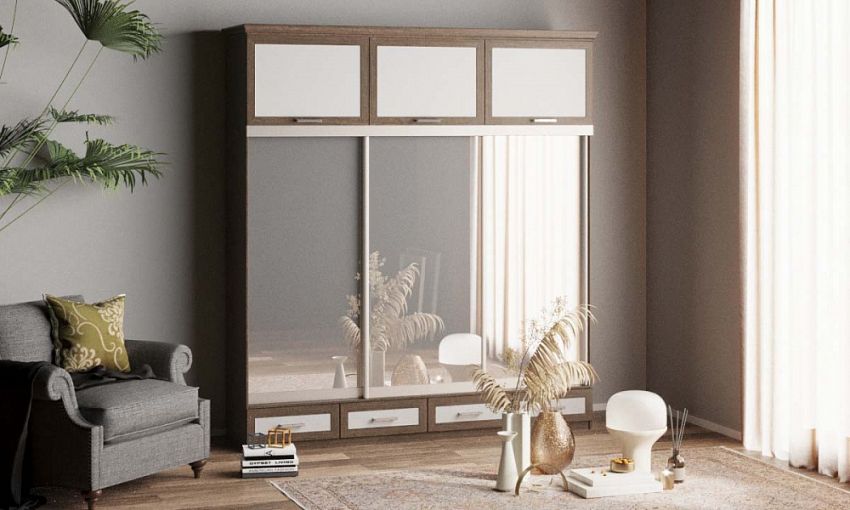 Шкаф-купе Нэмо 7 BMS привлекает элегантным дизайном и практичной комбинированной конструкцией, позволяющей компактно разместить большое количество вещей. Модель оборудована четырьмя выдвижными ящиками в основании, трехдверным отделением-купе с полками и штангой и просторной антресолью с открывающимися вверх дверцами. Рамочные фасады эффектно сочетаются с полностью зеркальными створками, визуально расширяющими пространство. Купить шкаф-купе Нэмо 7 BMS приглашаем к нам в интернет-магазин.