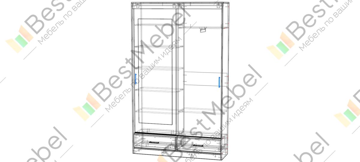 Шкаф- купе Олден 4 – это компактное и функциональное изделие для небольшой квартиры. Занимая совсем немного места в комнате, он способен вместить в себя огромное количество вещей. В Вашем распоряжении вместительная антресольная полка для белья, просторное отделение со штангой для вешалок и выдвижные ящички для обуви и мелочей. А для дополнительного удобства на двери фасада установлено зеркало. Шкаф выполнен из качественной и экологически чистой ламинированной плиты. Она стойка к механическим повреждениям и привлекательна внешне. Покрытие повторяет фактуру дерева, сочетая в себе светлые и темные насыщенные цвета.