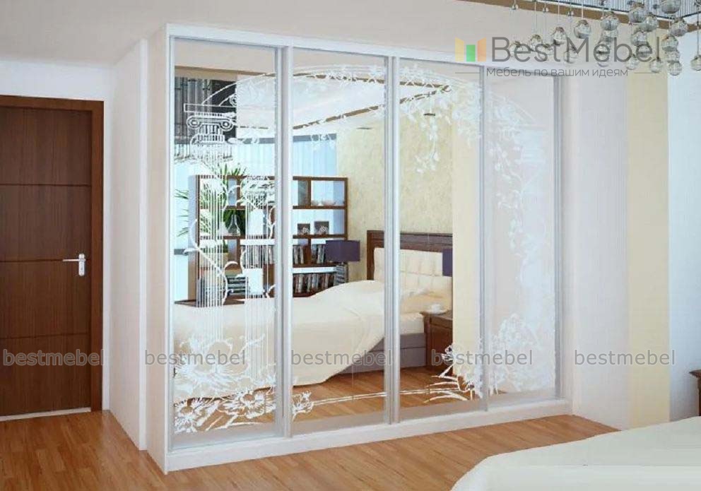 Шкаф-купе Оскар 14 BMS со светлым корпусом и полностью зеркальным фасадом, украшенным пескоструйным рисунком, наполняет пространство воздухом. Вместительная и не утяжеляющая интерьер четырехдверная модель станет прекрасным выбором для меблировки спальни. Просторные внутренние отделения решат проблему хранения семейного гардероба и постельных принадлежностей. Купить шкаф-купе Оскар 14 BMS вы сможете в нашем интернет-магазине, по желанию изменив цвет и размеры.