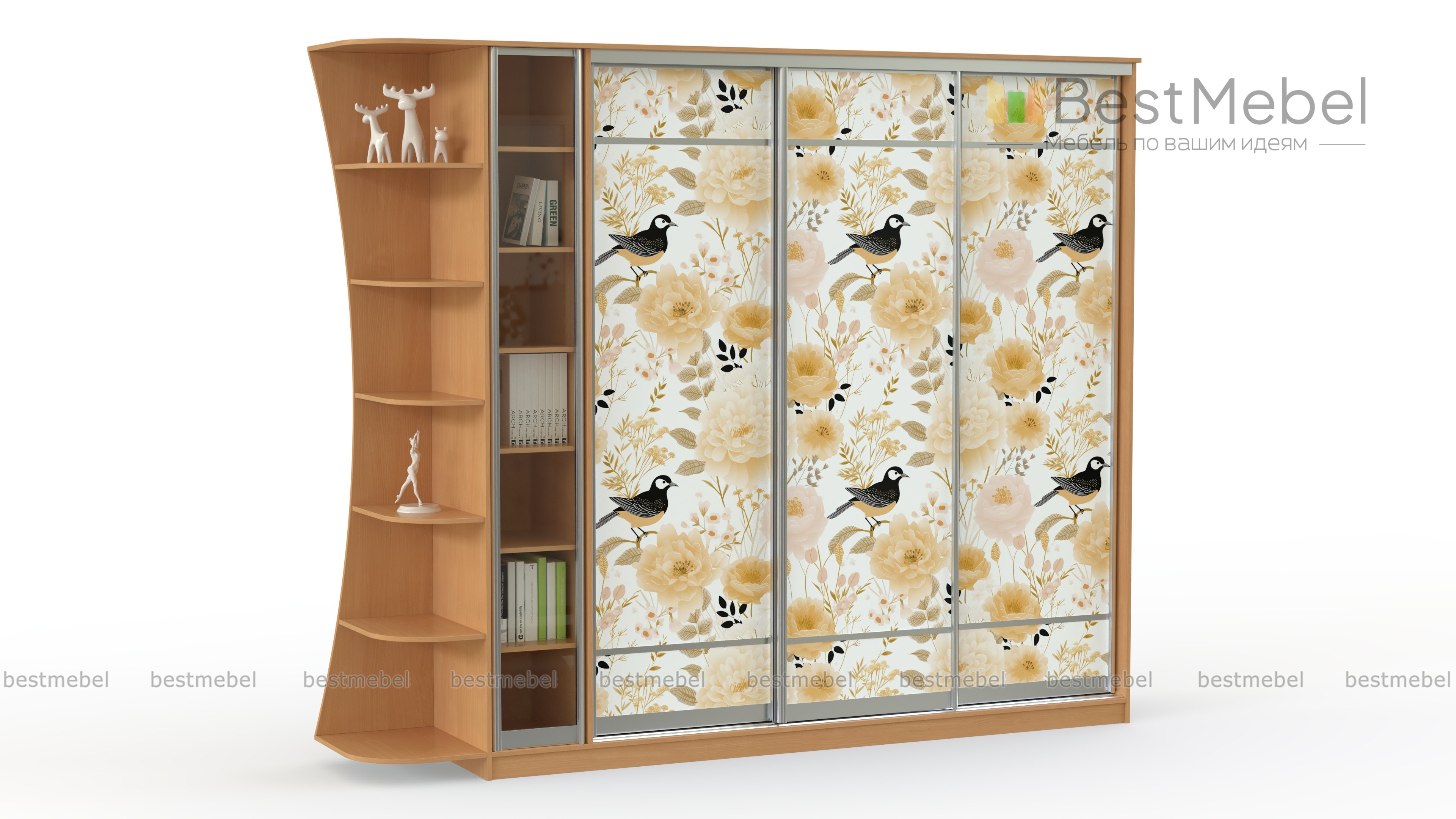 Шкаф-купе sk-072 BMS эффектно сочетает в оформлении ламинированную плиту древесных тонов, стекло и фотопечать. Оборудованный трехдверным раздвижным отделением, застекленными и открытыми полками, шкаф разместит не только одежду и домашний текстиль, но и книги, предметы декора и необходимые под рукой мелочи. Скругленные углы стеллажа делают пользование комфортным и безопасным. Купить шкаф-купе sk-072 BMS с возможностью изменения цвета и размеров приглашаем в наш интернет-магазин.