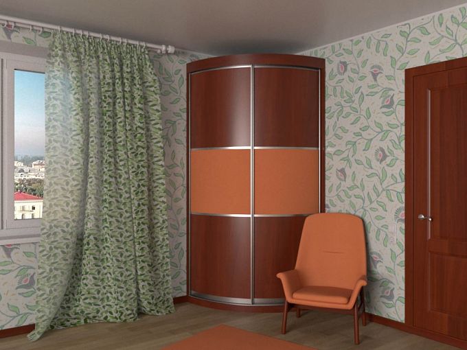 Радиусный шкаф Радион-1 BMS сможет эффективно задействовать пространство и создать яркий акцент в интерьере. Угловая модель занимает минимум места, но при этом вместительна за счет высоты и эффектного полукруглого фасада с внешним радиусом. Двухдверный шкаф с полками и штангой удобен для хранения белья и одежды и надежен в эксплуатации благодаря качественным направляющим. Купить радиусный шкаф Радион-1 BMS, выполненный в насыщенных древесных тонах с цветной вставкой, приглашаем в наш интернет-магазин.