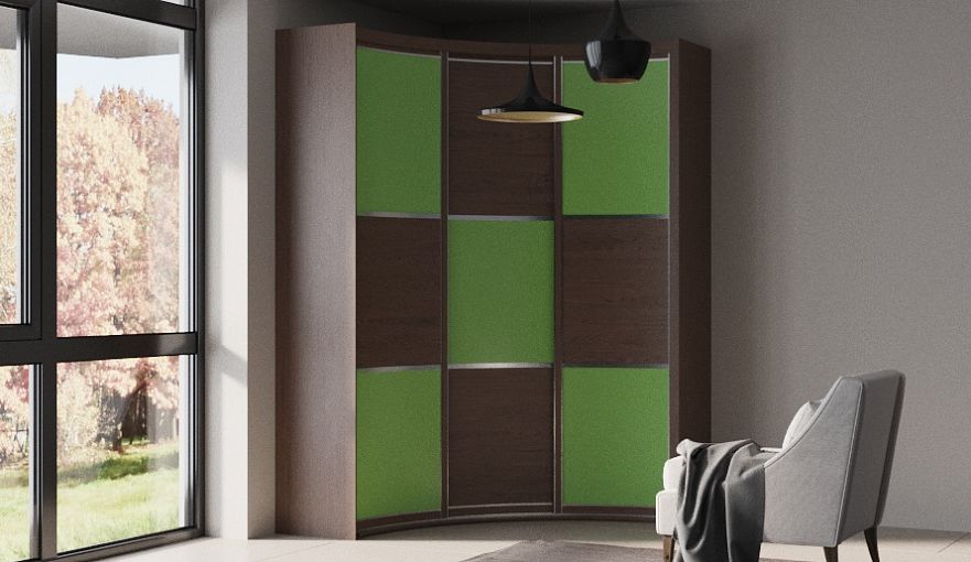 Шкаф радиусный Флоу 40 BMS гармонично сочетает нестандартную форму и яркий дизайн. Угловая модель для современной спальни эффективно использует обычно незадействованное пространство и поможет организовать удобное хранение одежды и постельных принадлежностей. Вогнутые фасады раздвижных дверей, выполненные в темном древесном оттенке, декорированы цветными вставками, расположенными в шахматном порядке. Купить Шкаф радиусный Флоу 40 BMS приглашаем в наш интернет-магазин по отличной цене.