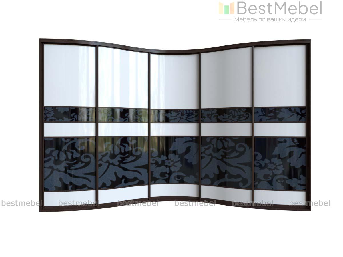 Шкаф радиусный угловой Гера BMS отличается крупными габаритами и будет эффектно смотреться в просторных помещениях. Роскошная пятидверная модель с волнообразным фасадом привлекает внимание визуальной легкостью, плавностью линий и гармоничным сочетанием белого и черного глянца с орнаментом. Благодаря отличной вместительности вы сможете организовать удобное хранение гардероба семьи и домашнего текстиля, сэкономив на лишней мебели. Купить шкаф радиусный угловой Гера BMS с учетом необходимых параметров приглашаем в наш интернет-магазин.