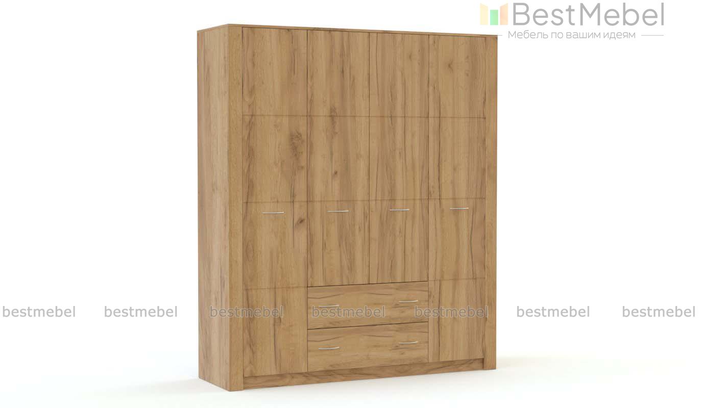 Распашной шкаф Индиана BMS выполнен в натуральных оттенках с имитацией массива дерева и декорирован горизонтальной фрезеровкой. Помимо вместительных распашных отделений с полками и штангой четырехдверная модель оборудована двумя выдвижными ящиками и компактно разместит предметы гардероба и домашний текстиль. Широкие декоративные накладки на фасаде шкафа придают ему массивность. Купить распашной шкаф Индиана BMS для меблировки спальни или просторной прихожей приглашаем в наш интернет-магазин.