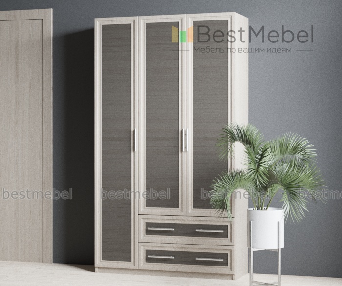 Распашной шкаф Крона 23 BMS – простая и элегантная современная классика, которая гармонично дополнит домашний интерьер, сделав его не только функциональным, но и уютным. Трехдверная модель с рамочными фасадами выполнена в контрастных древесных оттенках и дополнена удобными ручками-рейлингами. За распашными дверцами располагаются платяное отделение со штангой и полкой и бельевая секция. Два просторных выдвижных ящика в основании позволят аккуратно разместить мелочи. Купить распашной шкаф Крона 23 BMS вы сможете в нашем интернет-магазине.