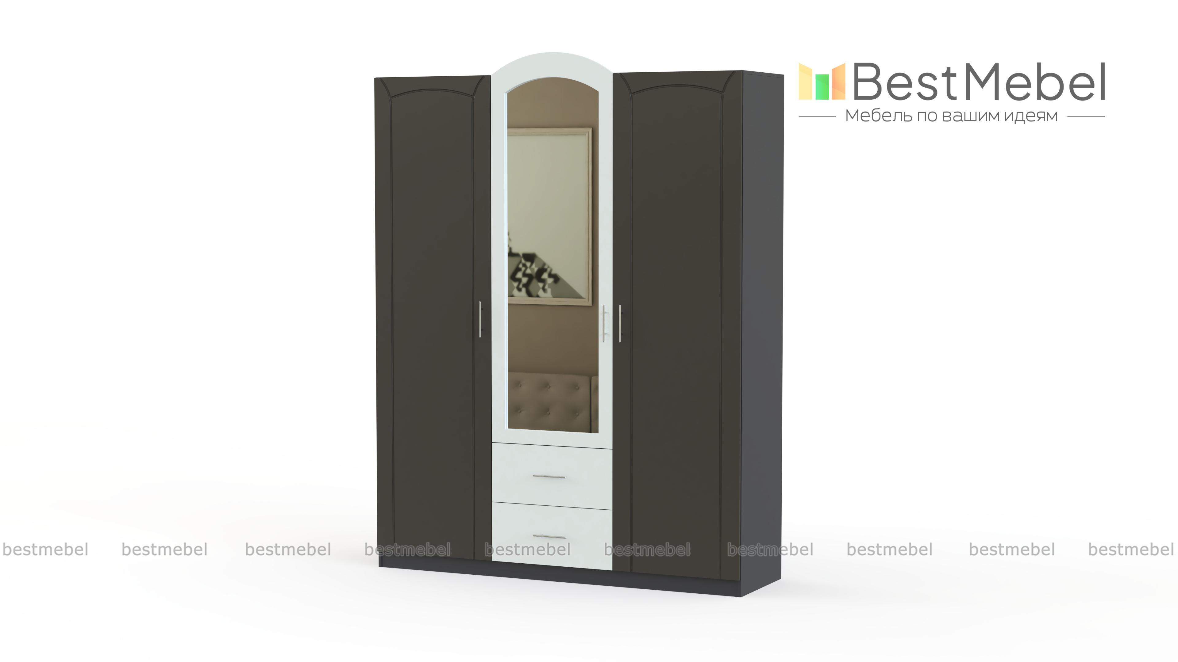Распашной шкаф Марта 01 BMS с оригинальным декором фасада и арочной центральной створкой сразу привлекает к себе внимание. В оформлении модели скомбинированы светлые тона и графитовый, большое зеркало со скругленным верхом визуально облегчает конструкцию. Трехдверный шкаф имеет удобные средние габариты и отличается хорошей вместительностью благодаря наличию распашных отделений с полками и штангой и двух выдвижных ящиков. Купить распашной шкаф Марта 01 BMS с учетом нужных размеров приглашаем в наш интернет-магазин.