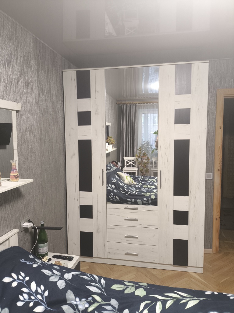 Шкаф вместительный, красивый, стильный. Большое зеркало зретильно увеличивает комнату. Она выглядит просторнее.