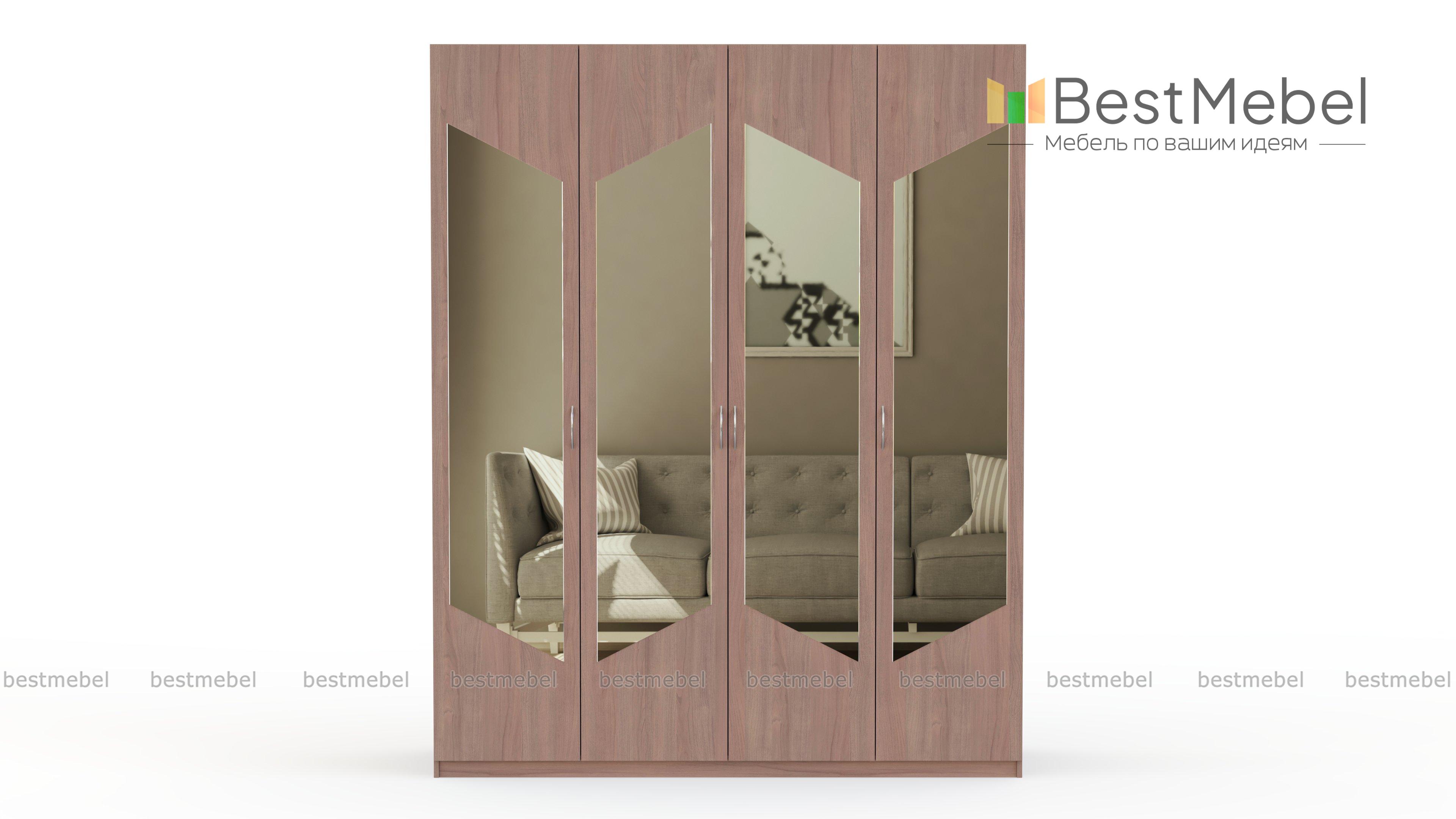 Распашной шкаф Паулина 35.2 BMS поможет создать не только функциональный, но и запоминающийся современный интерьер. Четырехдверная модель, выполненная в светлых тонах на выбор, привлекает оригинальным дизайном фасада с декоративными геометричными зеркалами. Для удобного хранения гардероба и постельных принадлежностей шкаф оборудован платяным отделением и полками. Купить распашной шкаф Паулина 35.2 BMS по доступной цене приглашаем на сайт нашего интернет-магазина.