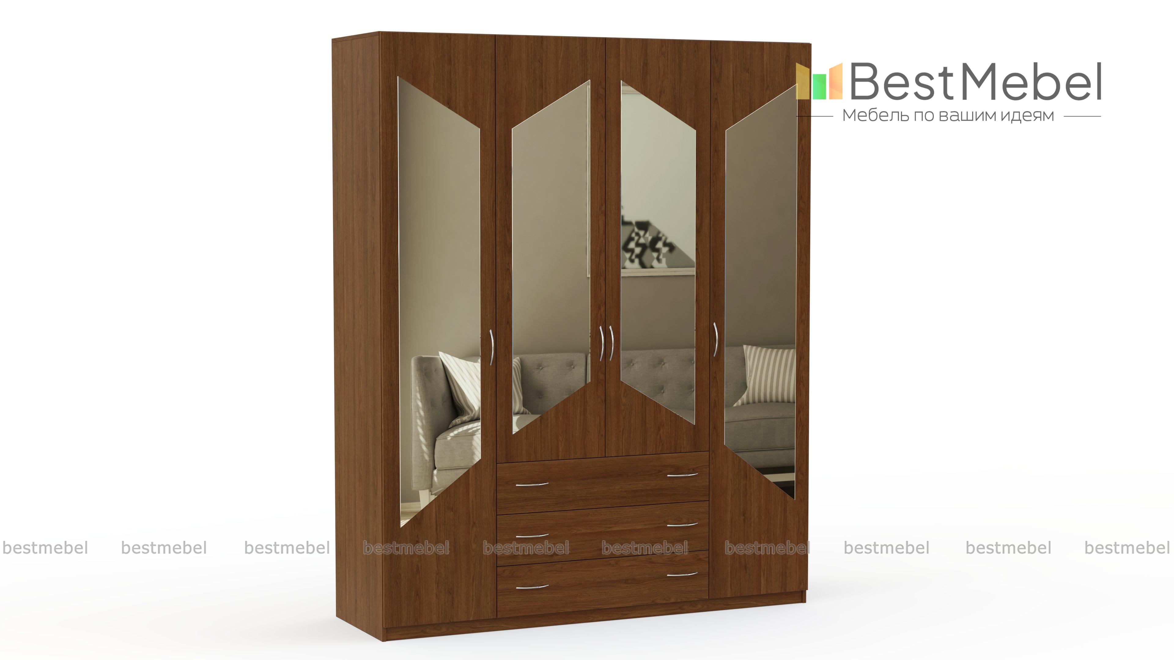 Распашной шкаф Паулина 40.2 BMS сможет не только компактно разместить большое количество вещей, но и визуально расширит границы комнаты. Четырехдверная комбинированная модель оборудована платяным отделением и двумя бельевыми, а также тремя широкими выдвижными ящиками. Эффектным интерьерным решением станет фасад шкафа, декорированный геометричными зеркальными накладками. Купить распашной шкаф Паулина 40.2 BMS приглашаем в наш интернет-магазин по выгодной цене.