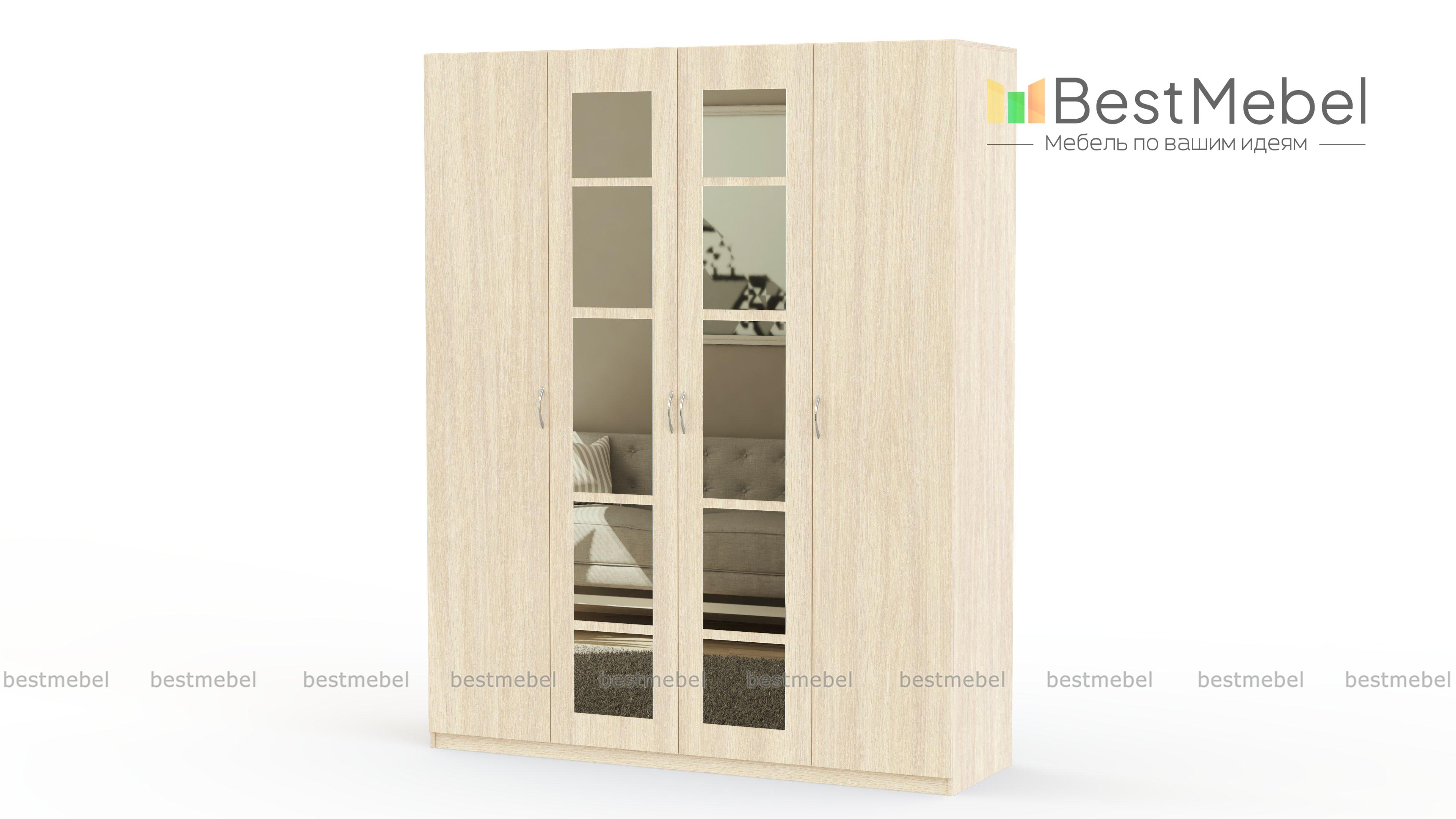 Распашной шкаф Паулина 42.2 BMS – это четырехдверная модель, вместительная и визуально легкая. Декорированный зеркалами фасад делает помещение просторнее и светлее, а оптимальное цветовое решение вы сможете подобрать самостоятельно. Шкаф выгодно отличается простой и надежной конструкцией дверей, которые обеспечивают прекрасный обзор содержимому платяного отделения и бельевых полок. Купить распашной шкаф Паулина 42.2 BMS, уместный в любом из помещений дома, приглашаем в наш интернет-магазин.