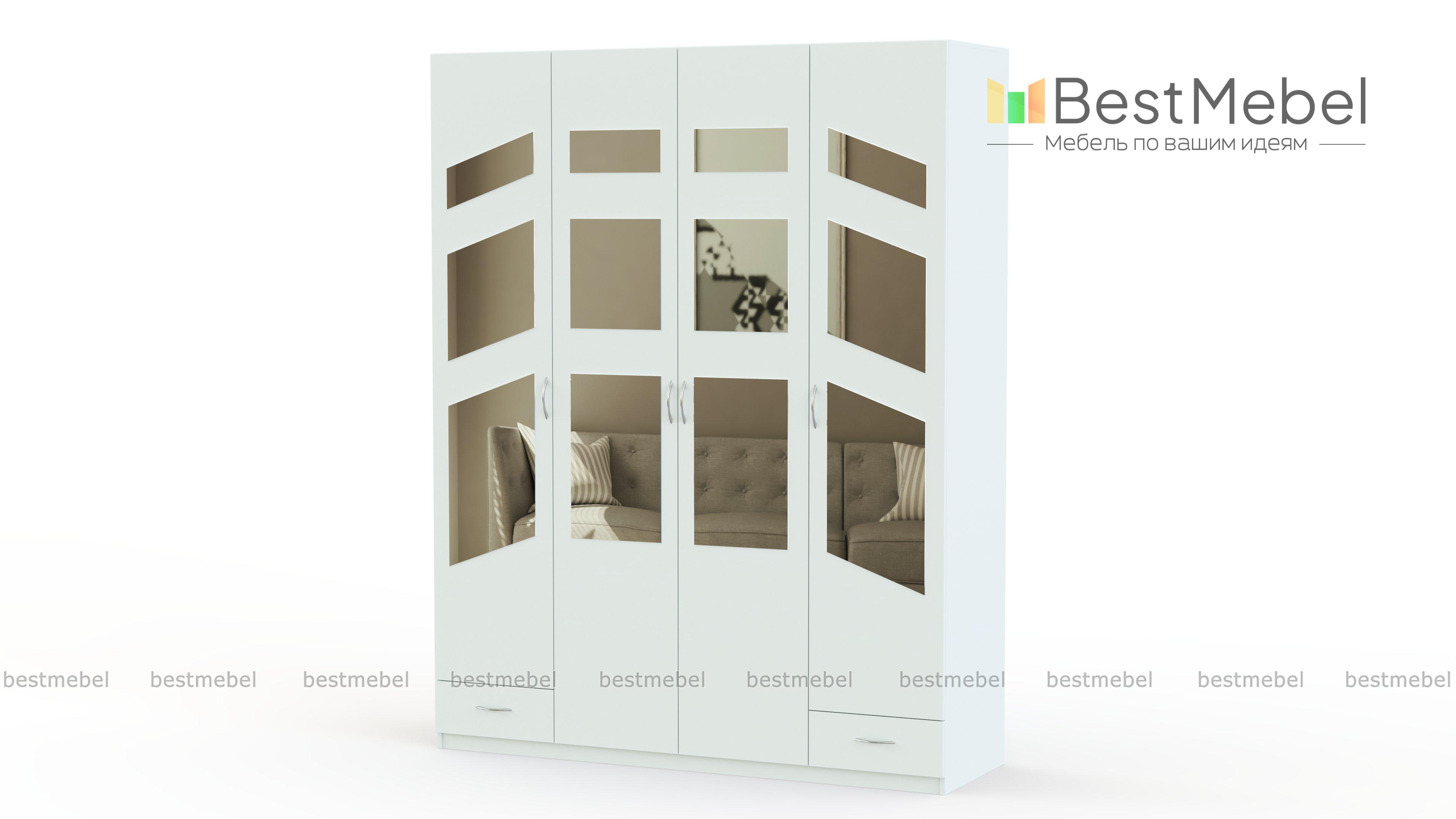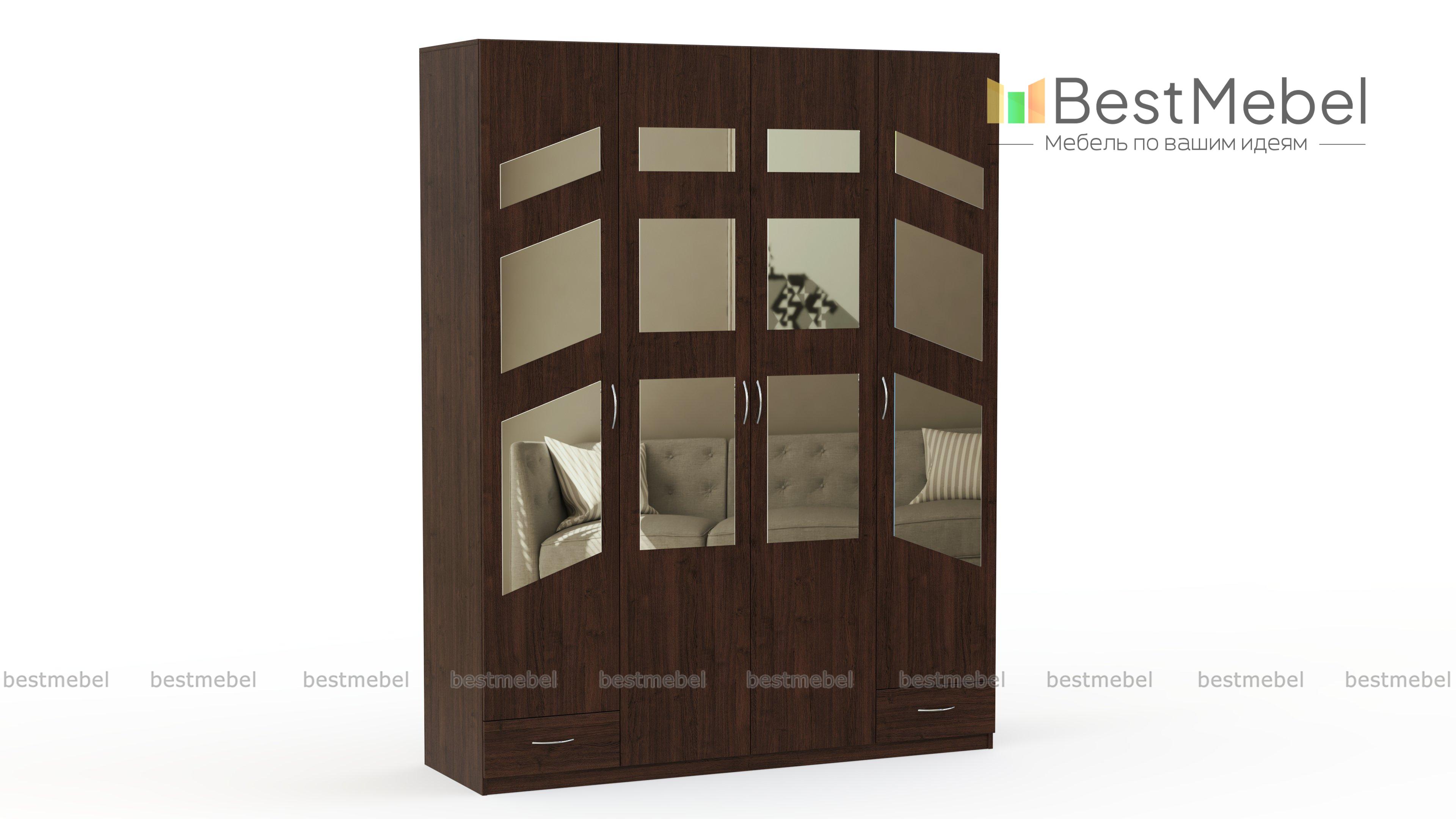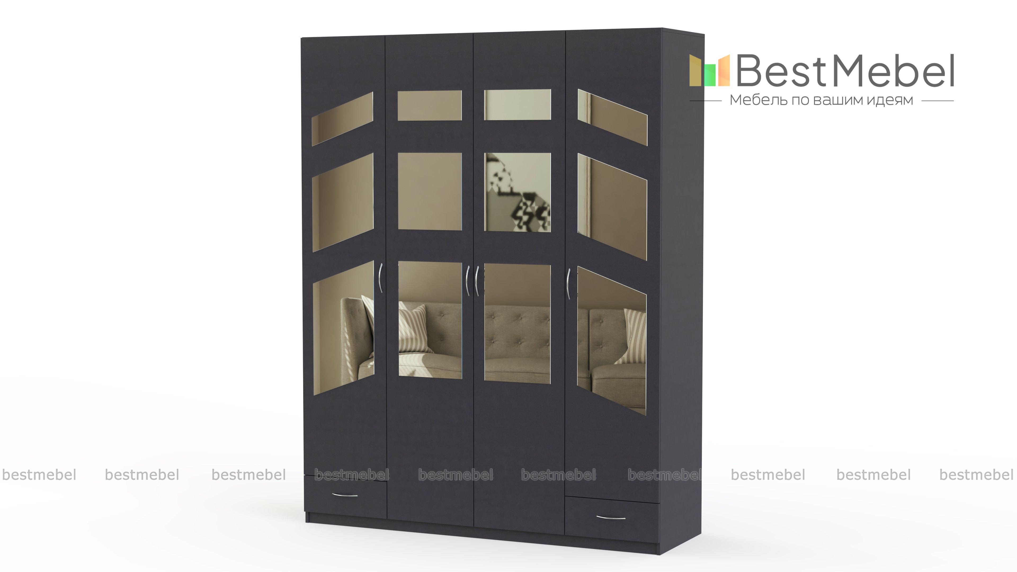 Распашной шкаф Паулина 51.1 BMS станет главным элементом дизайна спальни или гостиной благодаря оригинальному фасаду с геометричными зеркалами. Четырехдверная модель традиционной, проверенной временем конструкции оборудована платяным отделением, секциями с бельевыми полками и двумя выдвижными ящиками для мелочей. Залогом долговечности станут износостойкие материалы и надежная фурнитура. Купить распашной шкаф Паулина 51.1 BMS вы сможете в нашем интернет-магазине по доступной цене.