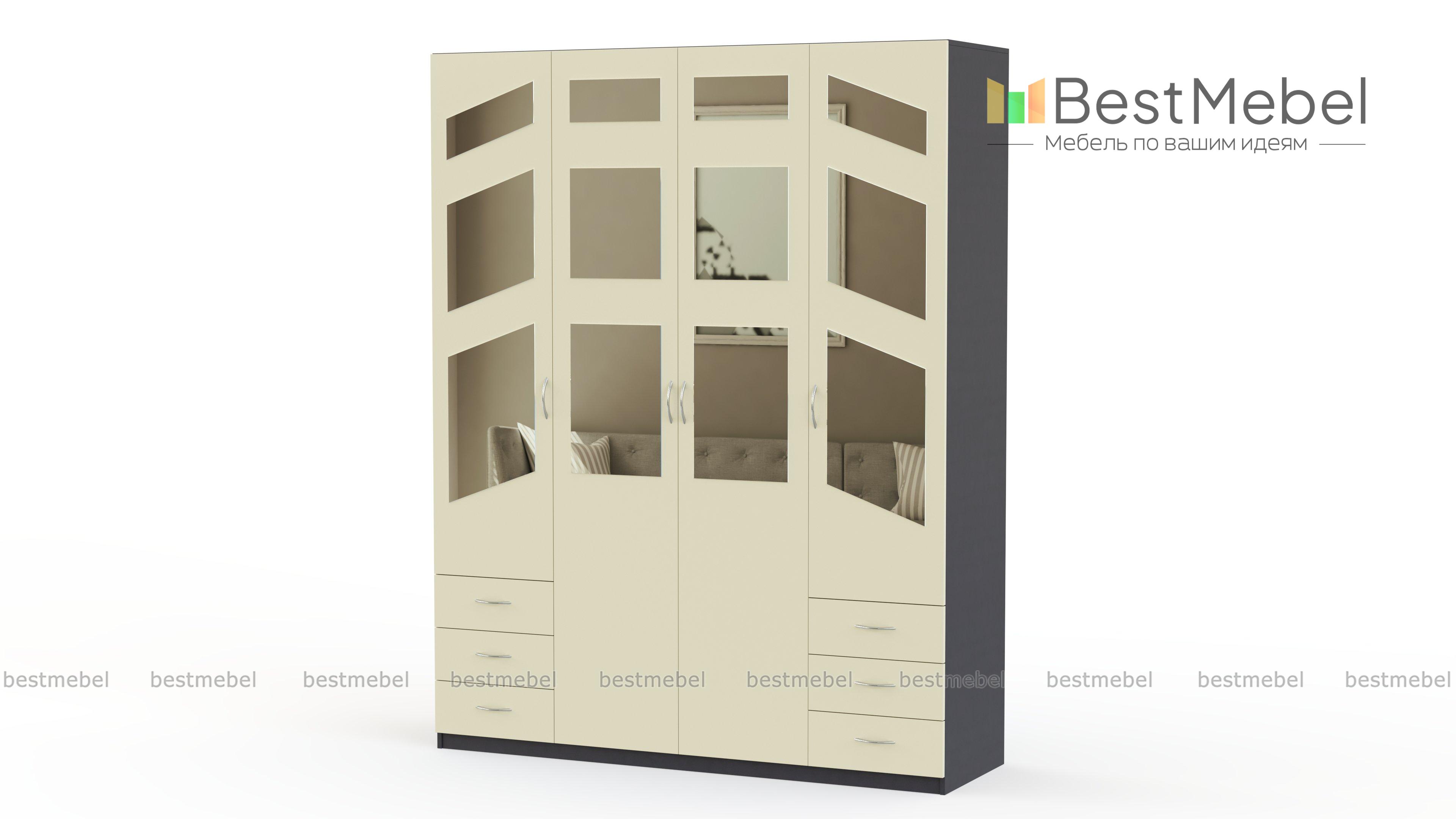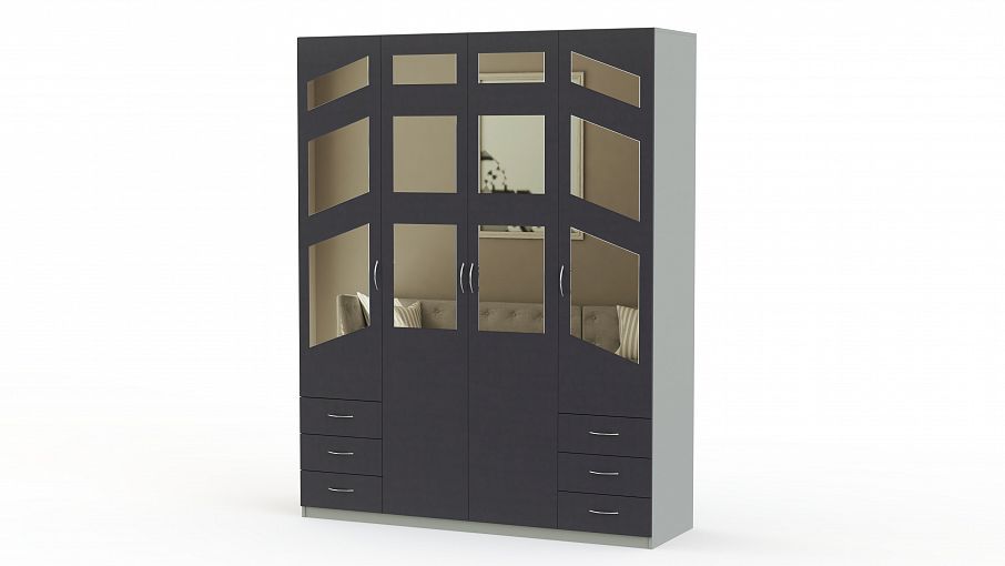 Распашной шкаф Паулина 55.1 BMS – это отличная вместительность, надежность проверенной временем конструкции и современный дизайн. Четырехдверная модель оборудована платяным отделением, бельевыми полками, а также шестью выдвижными ящиками для мелочей. Особенность фасада шкафа, выполненного в серых тонах, – оригинальный декор геометричными зеркальными накладками. Купить распашной шкаф Паулина 55.1 BMS по доступной цене вы всегда сможете в нашем интернет-магазине.
