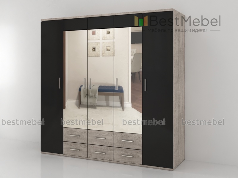 Распашной шкаф Престиж 5.6 BMS отличается эффектным современным дизайном и гармонично впишется в минималистичные интерьеры. Строгую геометрию формы подчеркивает монохромная расцветка, сочетающая светлые древесные тона и контрастные вставки, центральные дверцы – зеркальные. Крупногабаритная пятидверная модель легко разместит гардероб благодаря платяному отделению, бельевым полкам и шести выдвижным ящичкам для мелочей. Купить распашной шкаф Престиж 5.6 BMS и оборудовать удобной системой хранения просторную спальню вам поможет наш интернет-магазин.