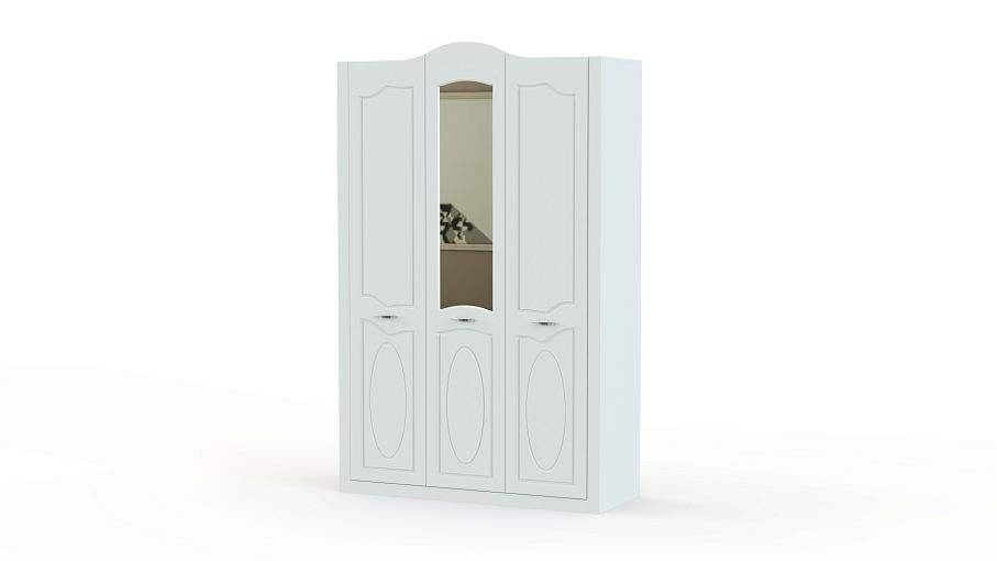Шкаф 3-х дверный Ева BMS понравится поклонникам легких и светлых классических интерьеров. Изящная модель с фигурно вырезанными дверцами декорирована неброской фрезеровкой, зеркалом и элегантными ручками. Удобно разместить одежду, обувь и аксессуары помогут платяное отделение со штангой и вместительные полки. Простая и надежная конструкция будет радовать хозяев и гостей дома долгие годы. Купить шкаф 3-х дверный Ева BMS, подобрав оптимальный вариант расцветки, вы сможете в нашем интернет-магазине.