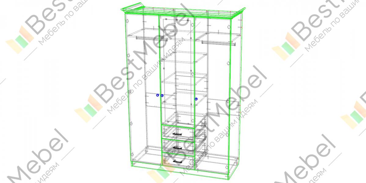 Шкаф 3-х дверный Ивушка BMS выполнен из экологичных материалов в классических древесных тонах. Декоративное оформление фасадов с карнизом, фрезерованным рисунком, изящно вырезанным зеркалом и ручками под бронзу придется по душе поклонникам традиционных интерьеров. Вместительная модель оборудована штангой для вешалок с одеждой, бельевой секцией и тремя выдвижными ящиками для мелких вещей. Купить шкаф 3-х дверный Ивушка BMS, подобрав оптимальное цветовое решение, вы сможете по лучшей цене в нашем интернет-магазине.