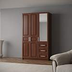 Шкаф 3-х створчатый Визит модуль 07 BMS отличается классическим дизайном и высокой функциональностью. Оригинальная модель в теплых древесных тонах станет частью интерьера прихожей, гостиной или спальни. Шкаф оборудован распашным отделением с антресолью и штангой и дополнительной секцией с зеркальным шкафчиком и тремя выдвижными ящиками. Фрезерованные фасады дополнены изящными ручками-скобами. Купить шкаф 3-х створчатый Визит модуль 07 BMS по отличной цене вы сможете в нашем интернет-магазине.