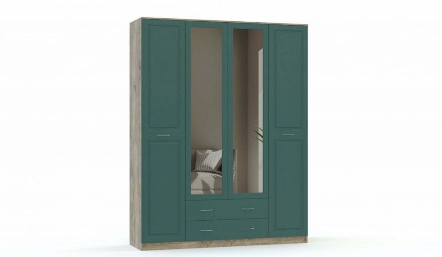 Шкаф Браво К 1 BMS сочетает в себе трендовый дизайн и отличную вместительность. Помимо распашных отделений с бельевыми полками и штангой четырехдверная модель оборудована двумя выдвижными ящиками, а зеркальные центральные створки помогут сэкономить на отдельном аксессуаре. Корпус в натуральных оттенках с имитацией древесной текстуры дополнен изумрудно-зеленым фасадом, украшенным рамочной фрезеровкой. Купить шкаф Браво К 1 BMS для современного спального интерьера вы сможете в нашем интернет-магазине.