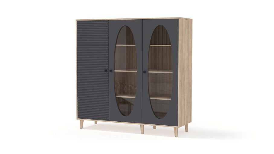Шкаф книжный Брукс 4 BMS представляет собой практичную и стильную модель, которая без труда впишется в большинство современных интерьеров. Овальные вырезы на дверцах помогут красиво поставить книги и любимые вещи. Темный фасад на фоне корпуса древесного оттенка и полок создает актуальный дизайн, высокие ножки обеспечивают распашной конструкции легкость. Купить шкаф книжный Брукс 4 BMS вы сможете в нашем интернет-магазине с индивидуальным подбором размеров, цветовой гаммы и фурнитуры.
