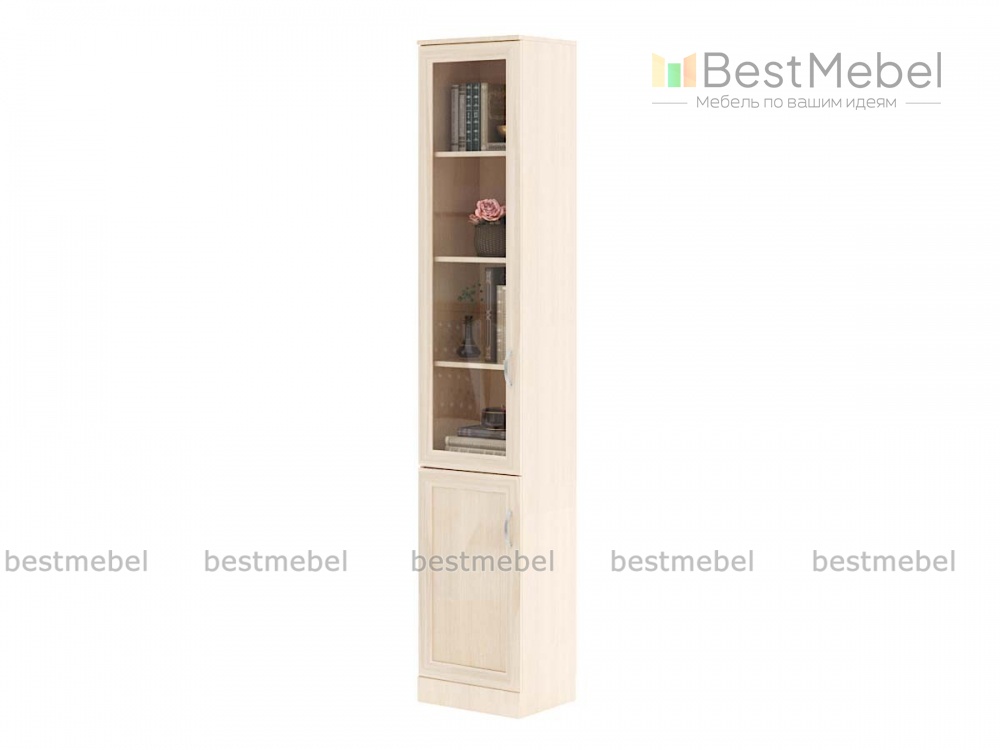 Шкаф Мечта 1А BMS – это простота и надежность конструкции, классический дизайн и отличная вместительность при скромных габаритах. Модель дополнит интерьер солидного рабочего кабинета или респектабельной гостиной в классическом стиле, разместив книги, документы, предметы из личной коллекции и многое другое на полках застекленного отделения и за глухой распашной дверцей. Купить шкаф Мечта 1А BMS, подобрав оптимальное цветовое решение для рамочных фасадов, вы сможете в нашем интернет-магазине.