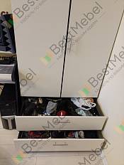 Шкаф хорошего качества за свою цену, большой выбор вариантов внутреннего наполнения. Крепкий, собирать было удобно. Задняя стенка на 1/3 состоит из перегородок, а не как бывает полностью из ДВП. Крепежа и фурнитуры хватило, отверстия просверлены в нужных местах. Изготовили очень быстро. Минус один - много опилок в упаковке, хотя сами детали не крошились. Пленки (покрытие) понравилось, кромки ровные.Заказ 00000203717