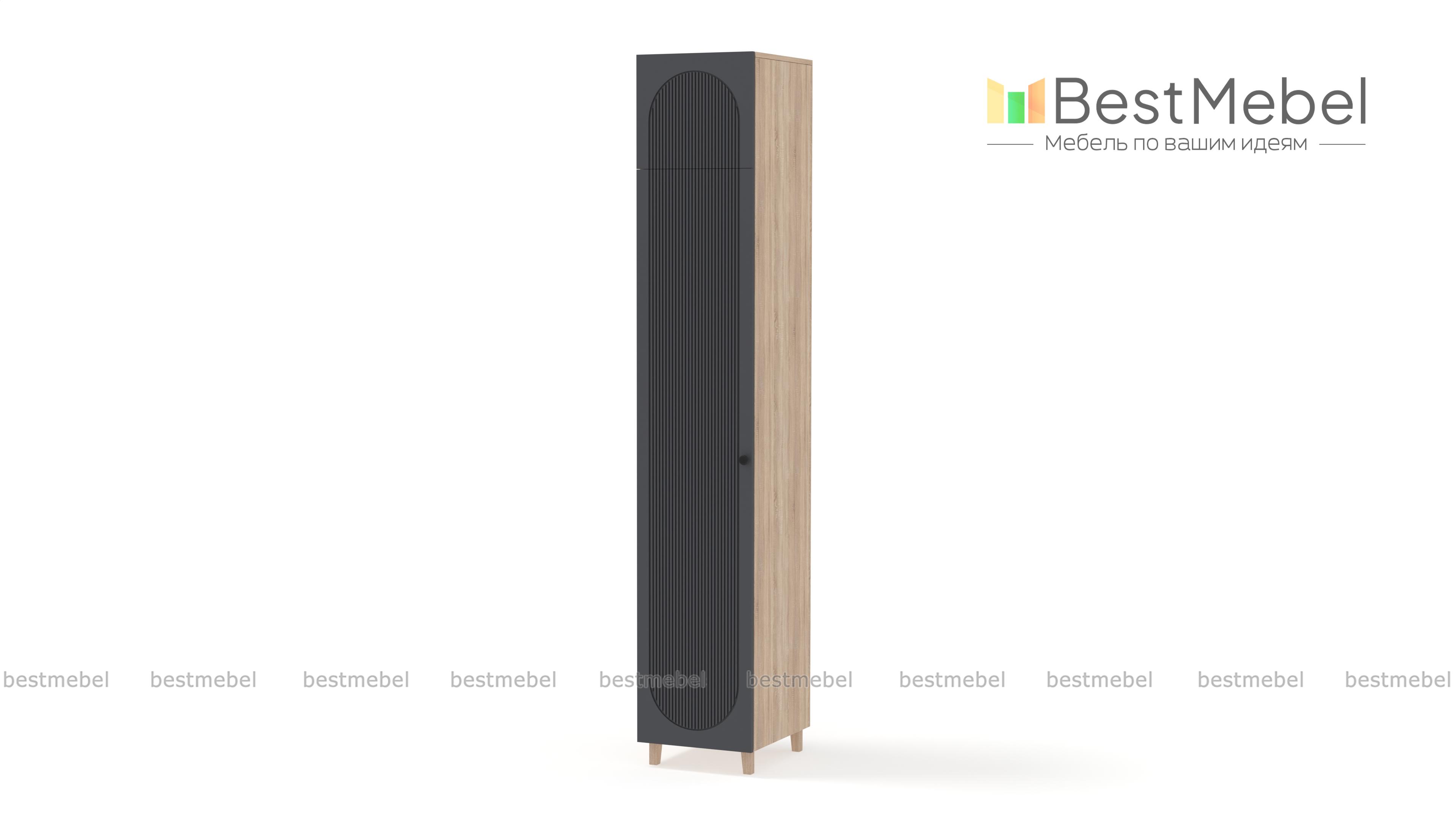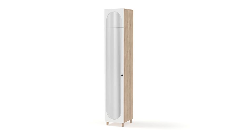 Шкаф-пенал Рене 13 BMS обеспечит удобное и эстетичное хранение вещам даже в небольшой комнате. Модель увеличенной высоты с деревянными опорами оборудована как стандартным распашным отделением, так и антресолью. Элегантный современный дизайн создает сочетание светлых и древесных тонов с оригинальным фасадным рельефом и легким силуэтом. Купить шкаф-пенал Рене 13 BMS в оттенках нашего каталога и необходимом размере вы всегда сможете на сайте интернет-магазина.