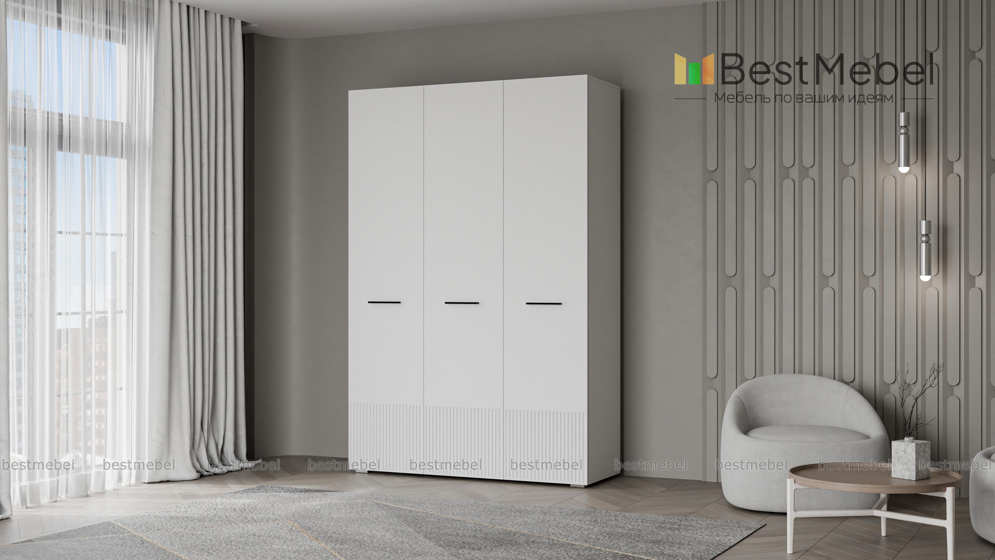 Шкаф распашной Декарт 3 BMS сохранит порядок в спальне, детской комнате или входной зоне. За двумя дверцами справа скрыта штанга для одежды, а однодверное отделение слева оборудовано полками. Элегантный фасад с рельефом и оригинальными ручками-скобами хорошо сочетается с разными интерьерами, помогая создать гармоничную обстановку. Купить шкаф распашной Декарт 3 BMS вы сможете в нашем интернет-магазине, самостоятельно подобрав размеры, цвет и наполнение.