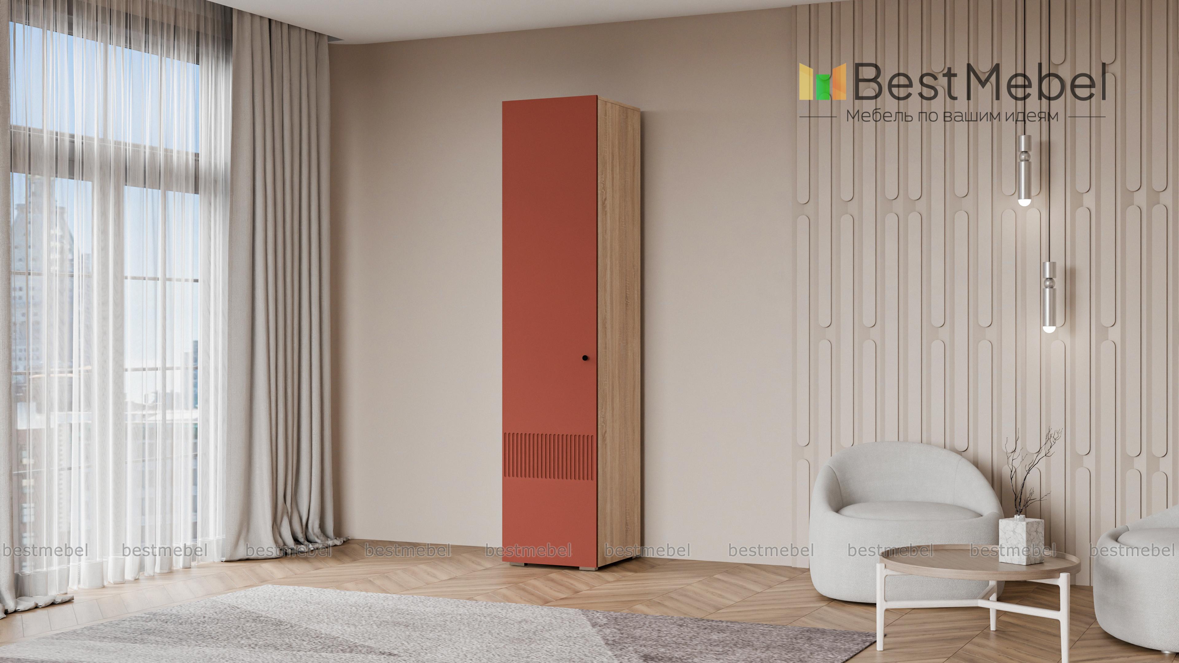 Шкаф распашной Джосс 1 BMS представляет собой компактный пенал для одежды. Внутри единственного отделения находятся штанга для вещей на вешалках и верхняя полка под аксессуары или коробки с мелочами. Фасад шкафа с фрезеровкой по низу выглядит ярко и современно, создавая стильный интерьер в вашей прихожей, спальне или гостиной. Купить шкаф распашной Джосс 1 BMS в подходящем размере и любых оттенках из каталога приглашаем недорого в наш интернет-магазин.
