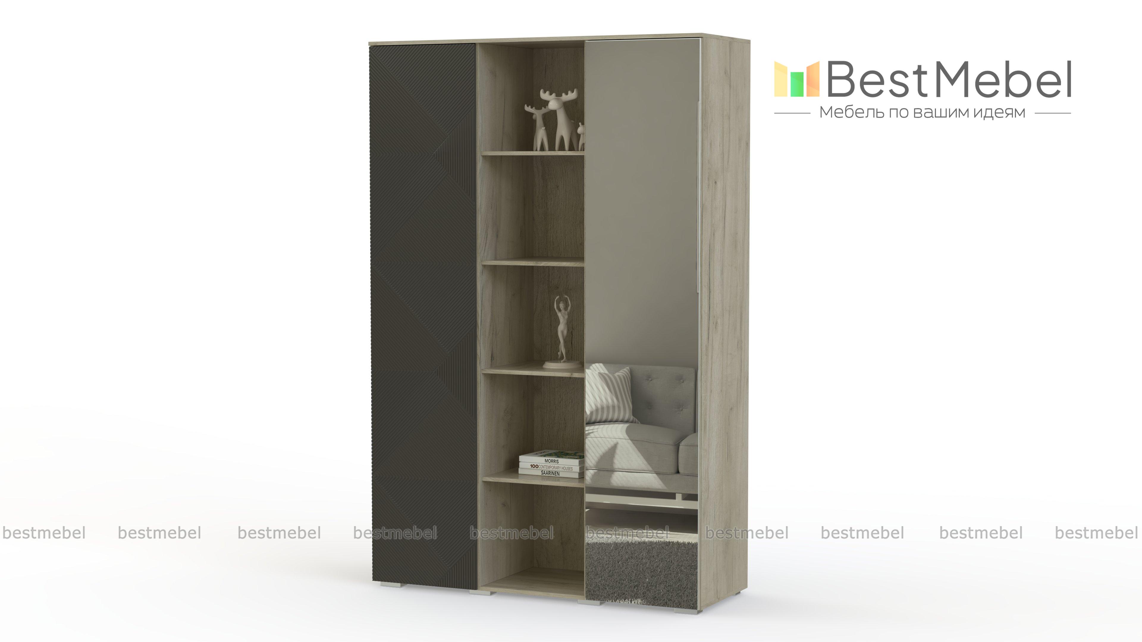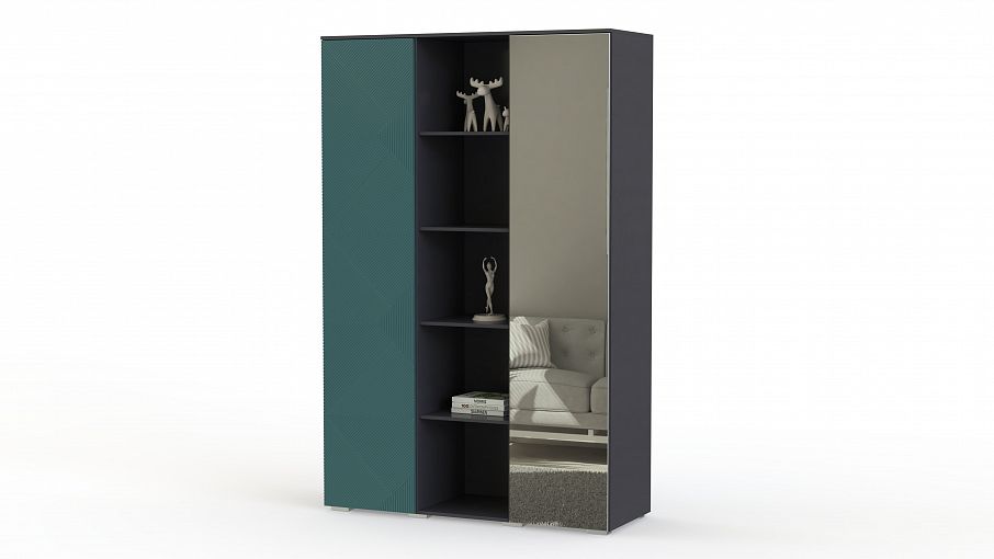 Шкаф распашной Электра 19 BMS сочетает в себе функции классического платяного шкафа и стеллажа. Два однодверных отделения, предназначенных для хранения одежды и домашнего текстиля, разделены открытыми книжными полками. В оформлении фасада эффектно скомбинированы зеркальное полотно и геометричная фрезеровка на цветном фоне. Купить шкаф распашной Электра 19 BMS для меблировки гостиной, спальни или прихожей вы сможете на сайте нашего интернет-магазина.